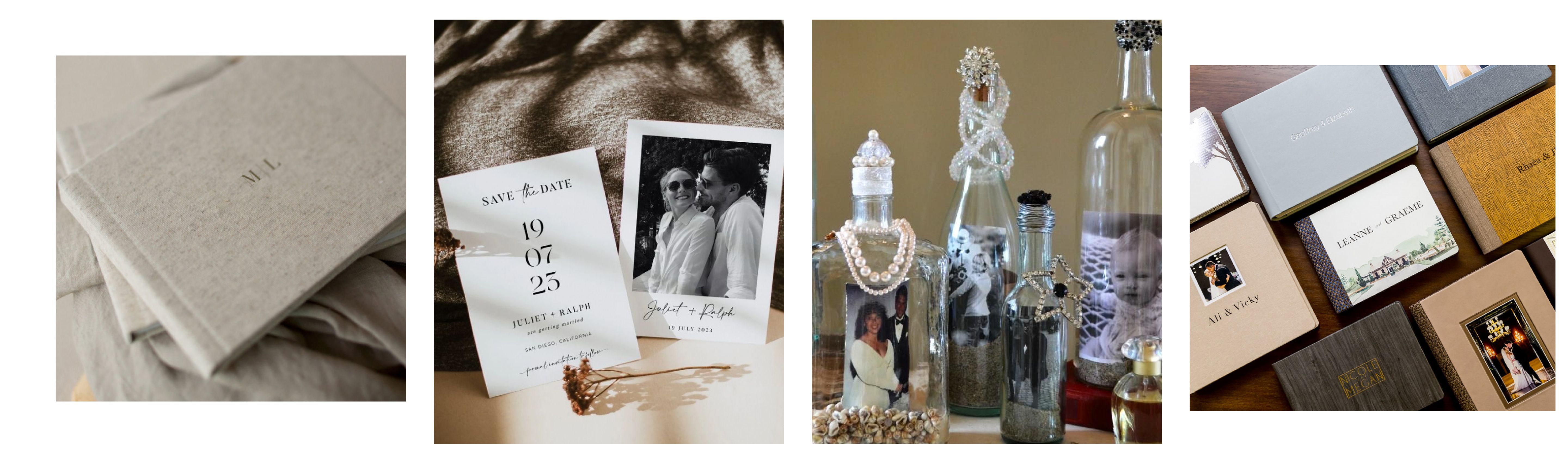 Choose 12 of the most stunning wedding images, including pre-and post-wedding photoshoot pictures, and order a wall or desktop picture calendar. Add dried flower seeds to such calendars. A month will pass, and you will wet the paper and let the sprouts germinate. By the next season, moms will already have flower beds. It's a very romantic thing.