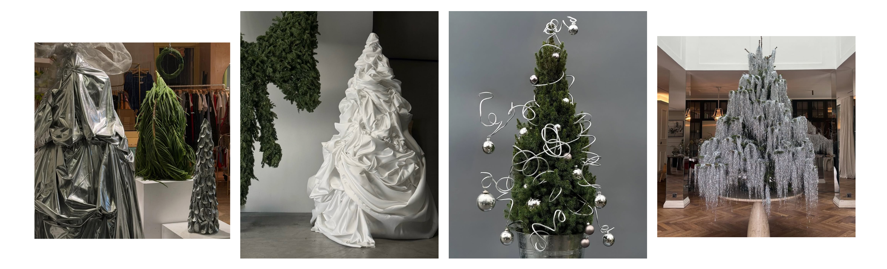 This creative approach to wedding decor is popular at fashion-forward weddings, art collaborations that feel like exhibitions, and brand events where innovation matters. Both Christmas trees and weddings share themes of celebration, tradition, and beauty, but they come from different ideas. These installations make striking photo backdrops during Christmas and can help wedding photos stand out. Placing experimental trees in a traditional Christmas tree farm creates a strong contrast, making the modern designs even more eye-catching.