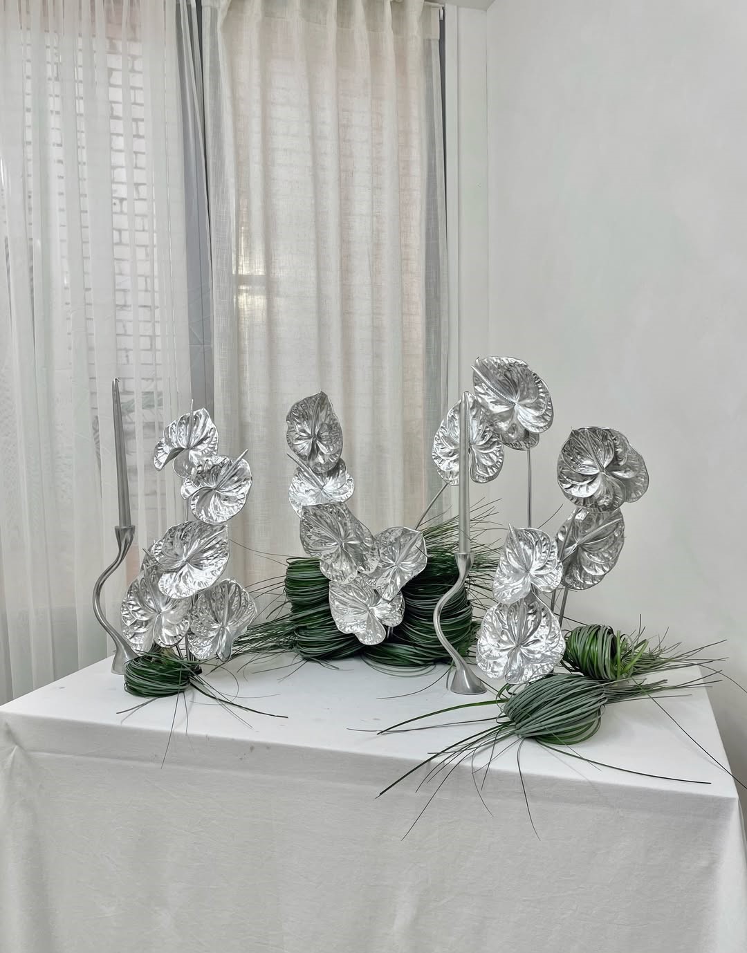Silver is replacing gold and brass in 2026 wedding decoras a cooler, more modern metallic choice. While gold has long served as a warm symbol of luxury and tradition, silver feels quieter and more contemporary. Reflecting light softly without drawing attention, it is ideal for couples who prefer understated sophistication. Silver pairs naturally with the Cloud Dancer palette to harmonize without clashing; it photographs beautifully in both natural and artificial light, retaining its true tone without the yellow cast that gold can create.