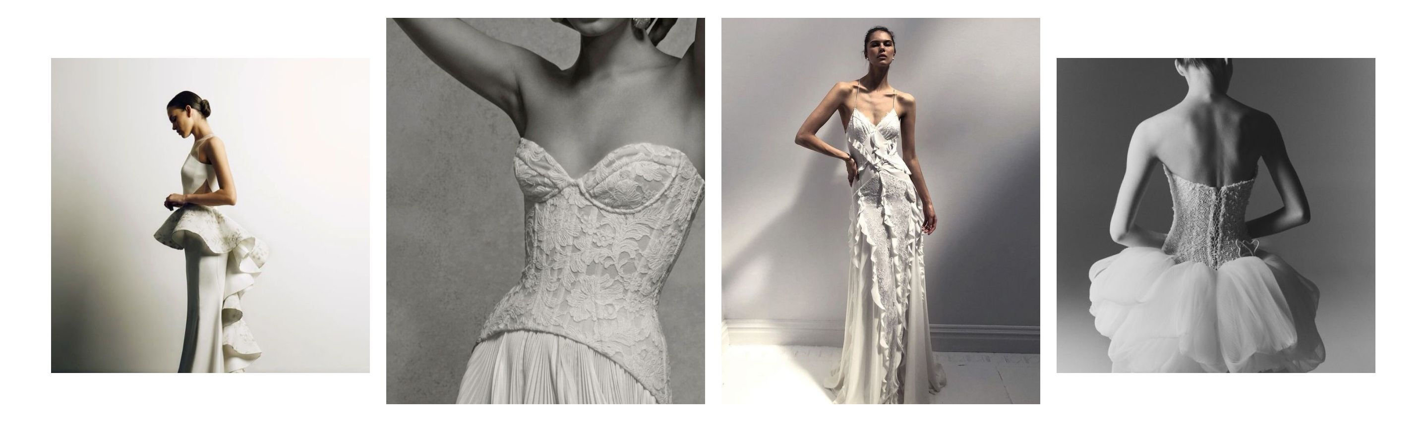Feathers are a playful and luxurious detail being embraced by many designers in 2024. Feather trims or full feathered skirts add movement and drama to any gown. These fun embellishments are ideal for a bride or guest looking to bring an element of surprise to their evening attire.