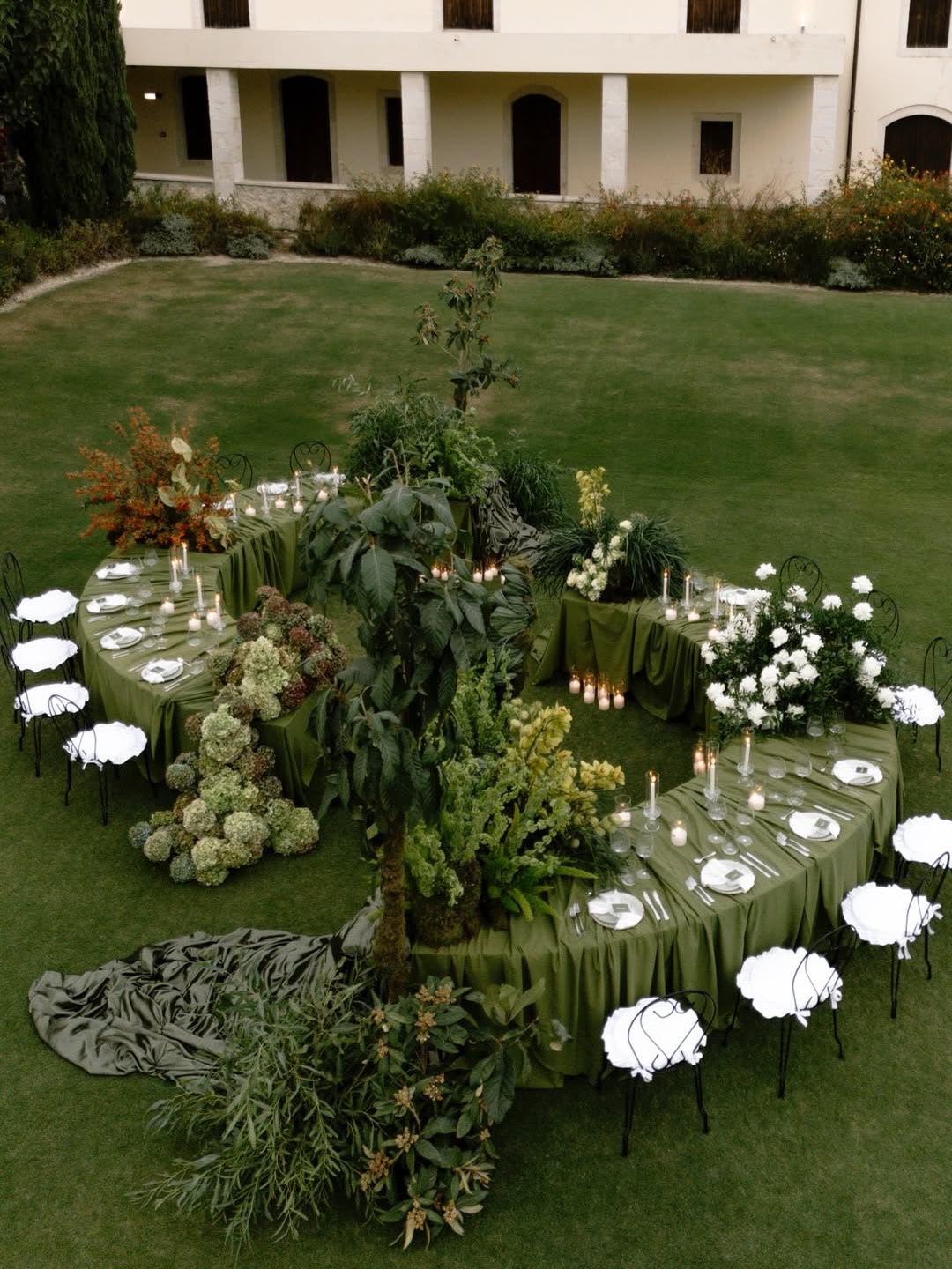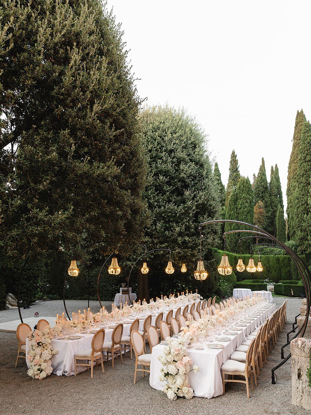 | Long Communal Tables | 30-80 guests | Dramatic, editorial, family-style intimacy | Encourages conversation across table | Requires level ground, clear sightlines |