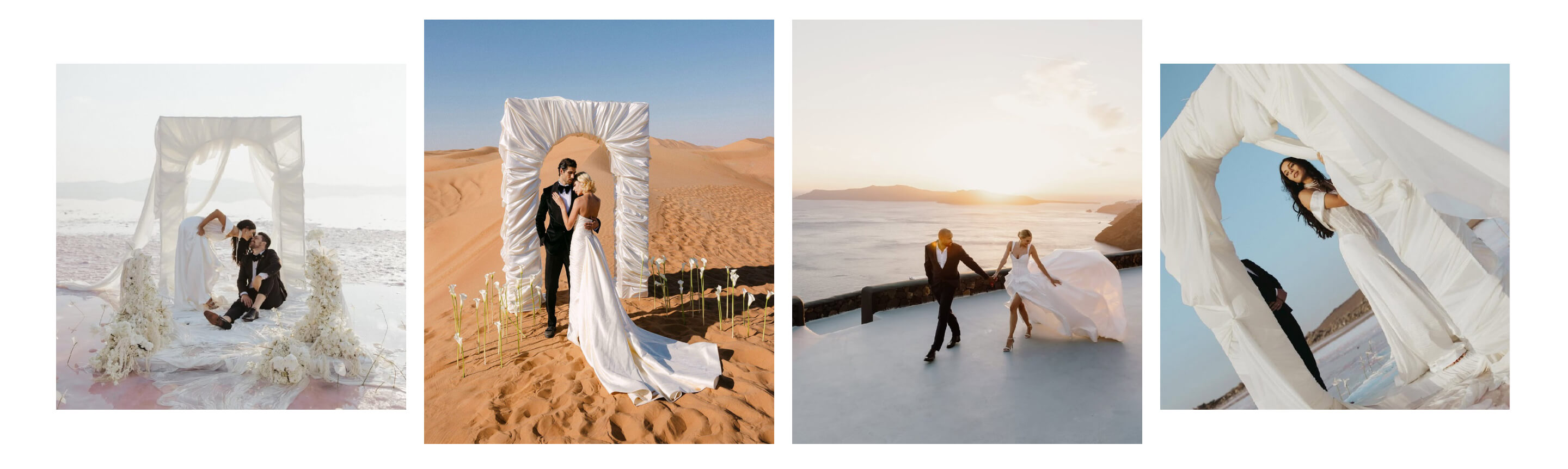 What you wear needs to work with your location, the weather, and how much moving around you'll be doing. Here are some ideas for a photoshoot to capture the essence of fashion and balance, while also being practical – something traditional wedding attire often isn't.