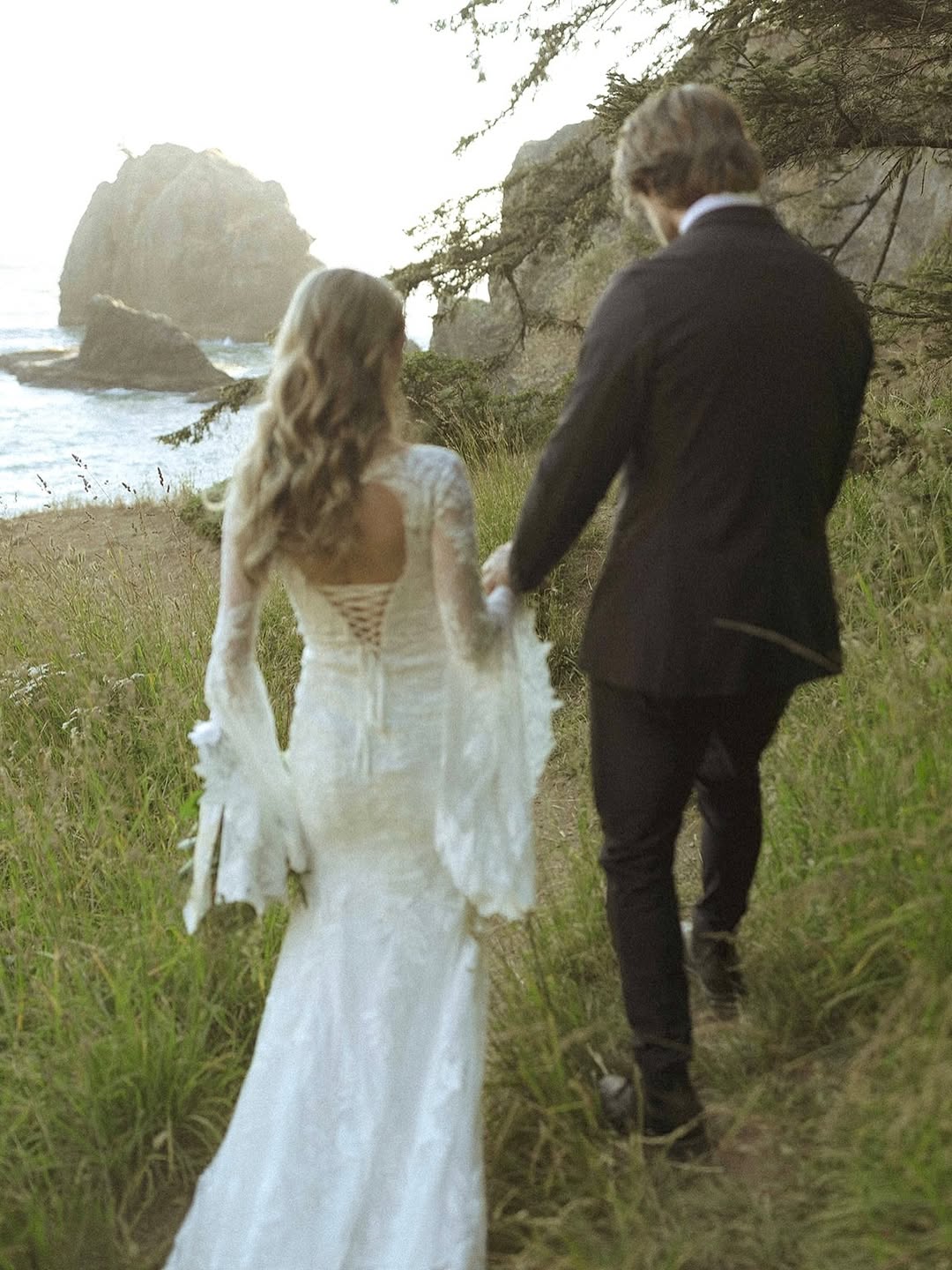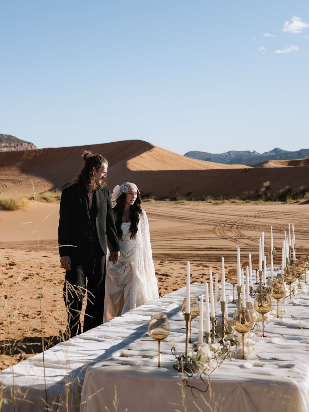 - Tea-length or midi – Practical for rough terrain while still feeling bridal; easier to move in than full-length gowns