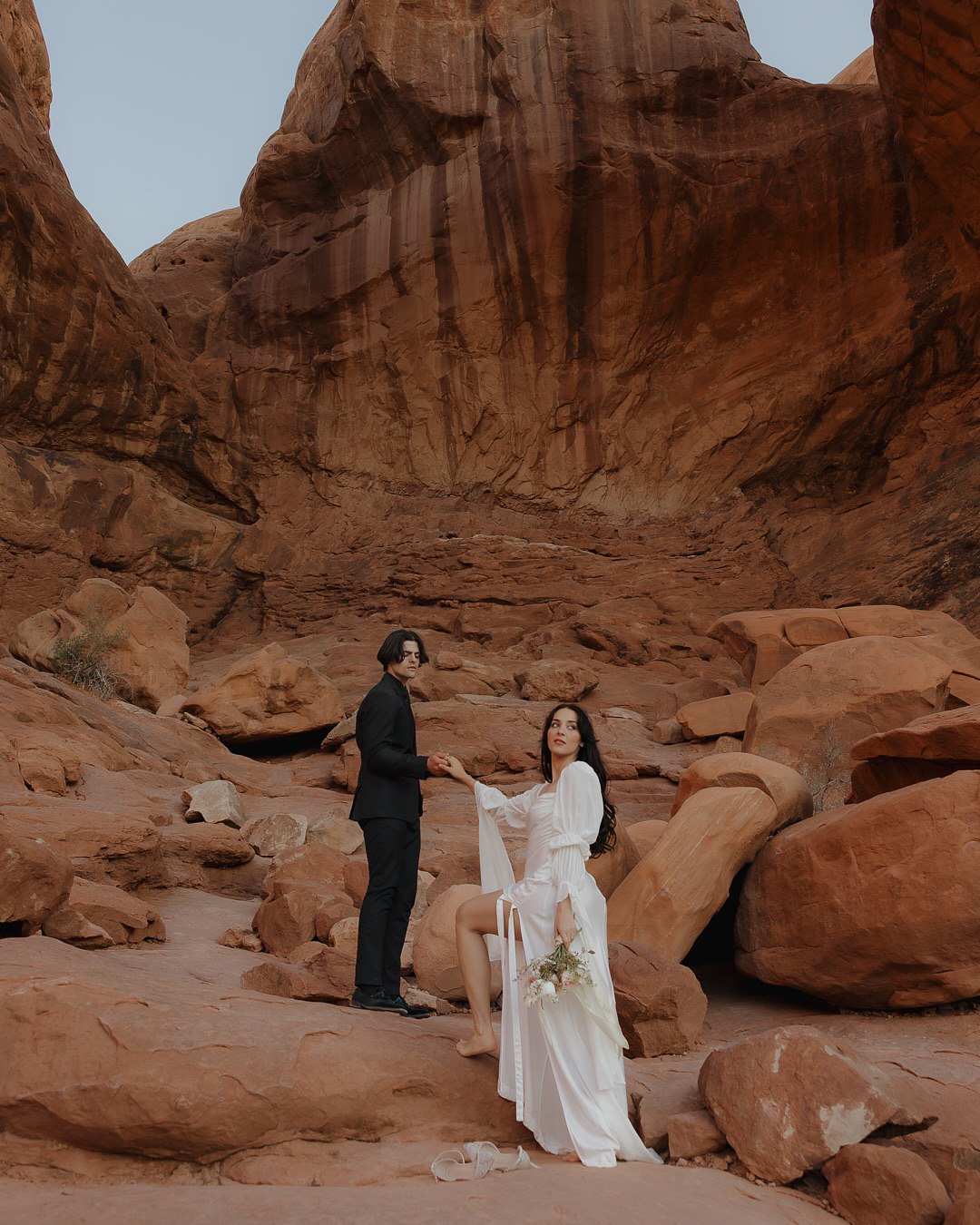Footwear and accessories for different locations – Beach: barefoot or minimal sandals. Mountains: hiking boots that look decent in photos, or bring separate shoes for portraits. Desert: closed-toe shoes (sand gets hot). Forest: boots that handle mud. Accessories should add to rather than distract from the overall aesthetic. A statement veil, beautiful earrings, a meaningful necklace—pick one or two focal points.