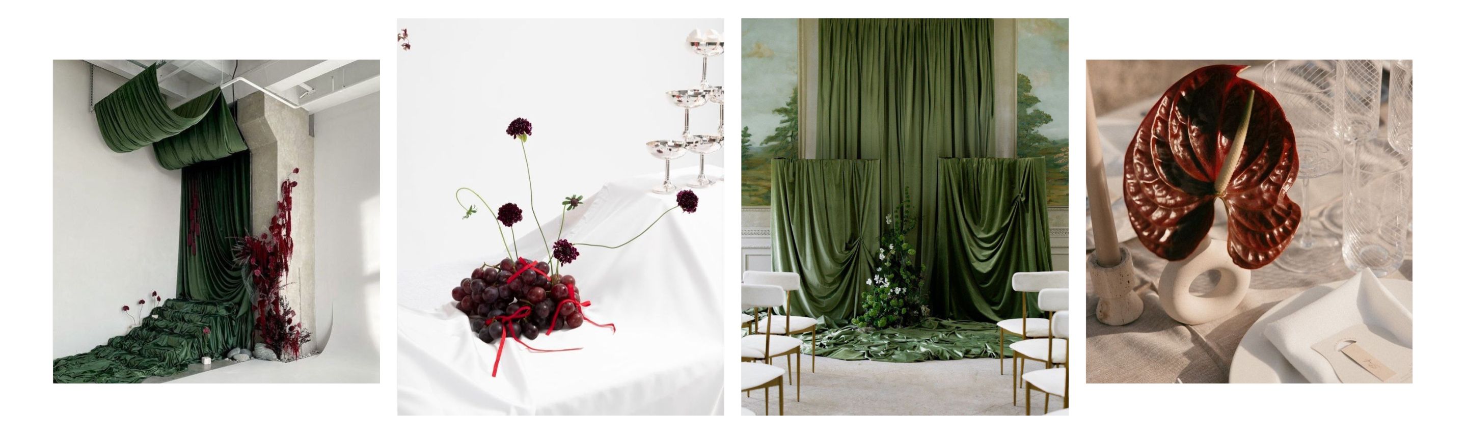 - Tablescapes featuring burgundy napkins, candles, or chair ribbons.