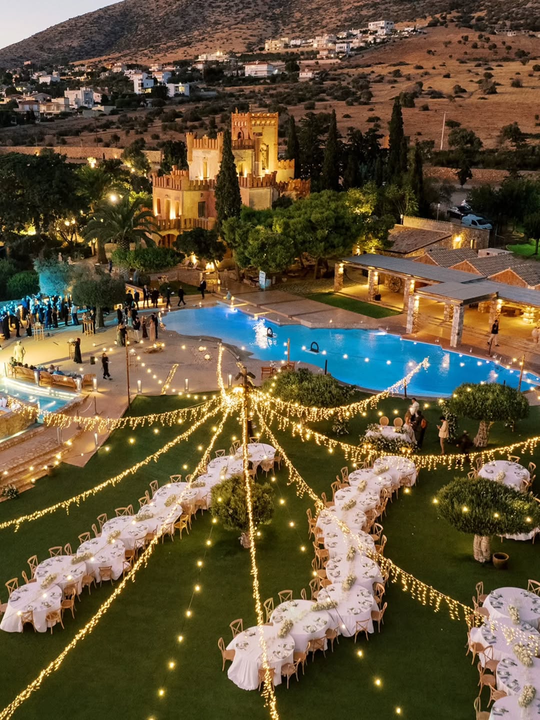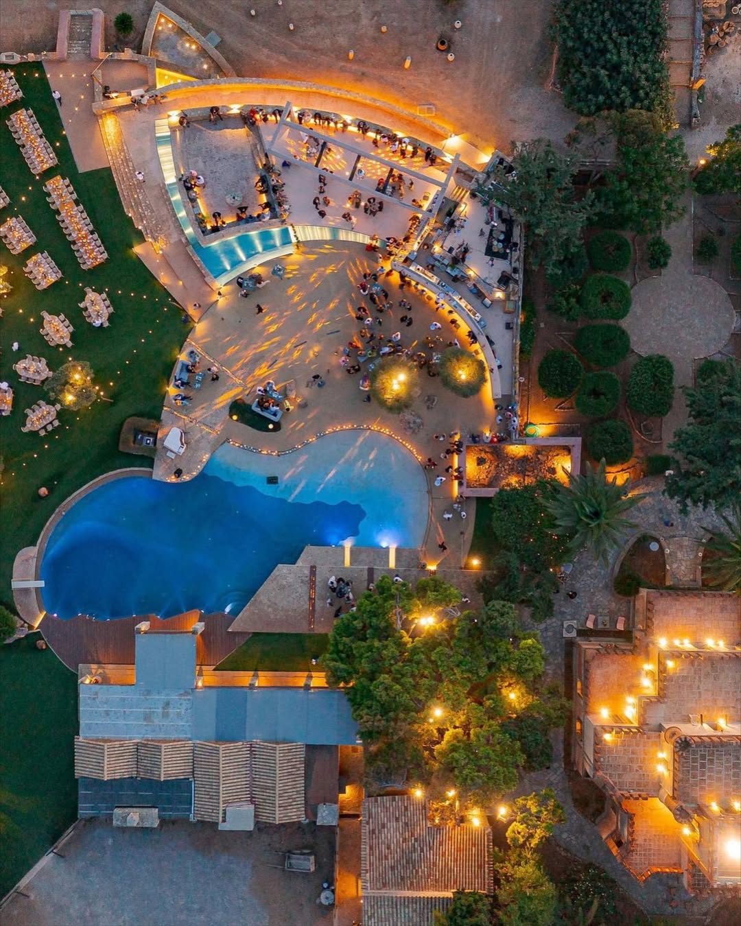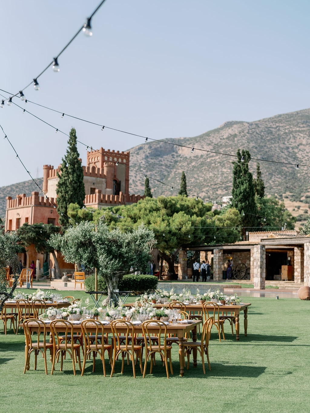 This is where dreams take shape under the stars. Centuries-old olive trees and evergreen lawn create a canvas for receptions from 20 to 700 guests. The lighting possibilities are endless, and each celebration here feels completely unique.