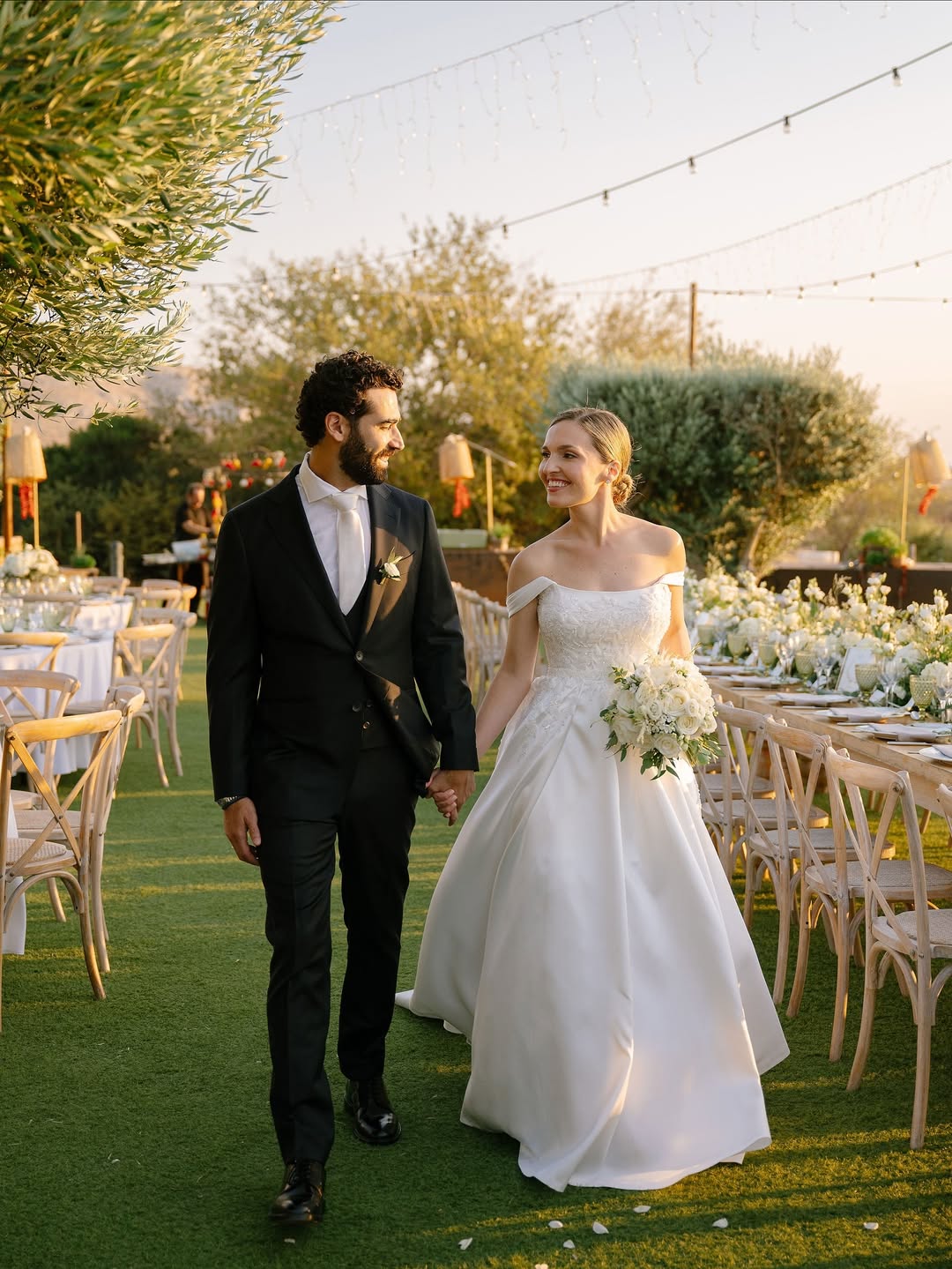 Alec and Isabella Manfre summed up their entire wedding weekend: "The entire weekend was filled with so much love- from a rehearsal dinner at Zonars with beautiful views of the Acropolis, to a welcome party on the beach at Coastal at Mavro Lithari, to stunning views at Pyrgos Melissourgou, the weekend was incredible!"