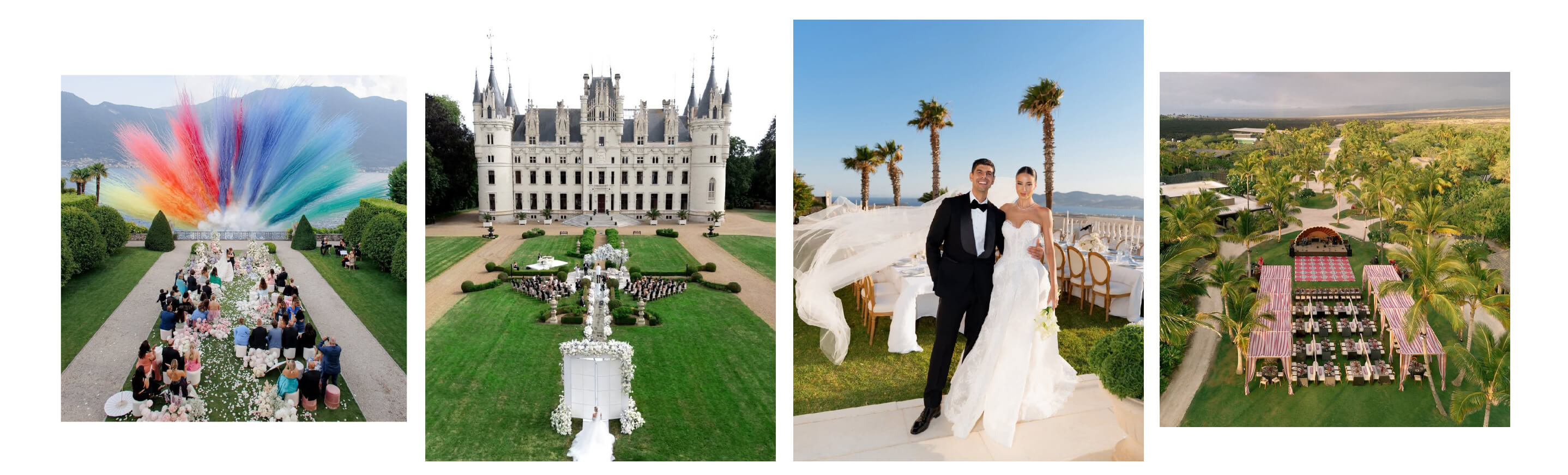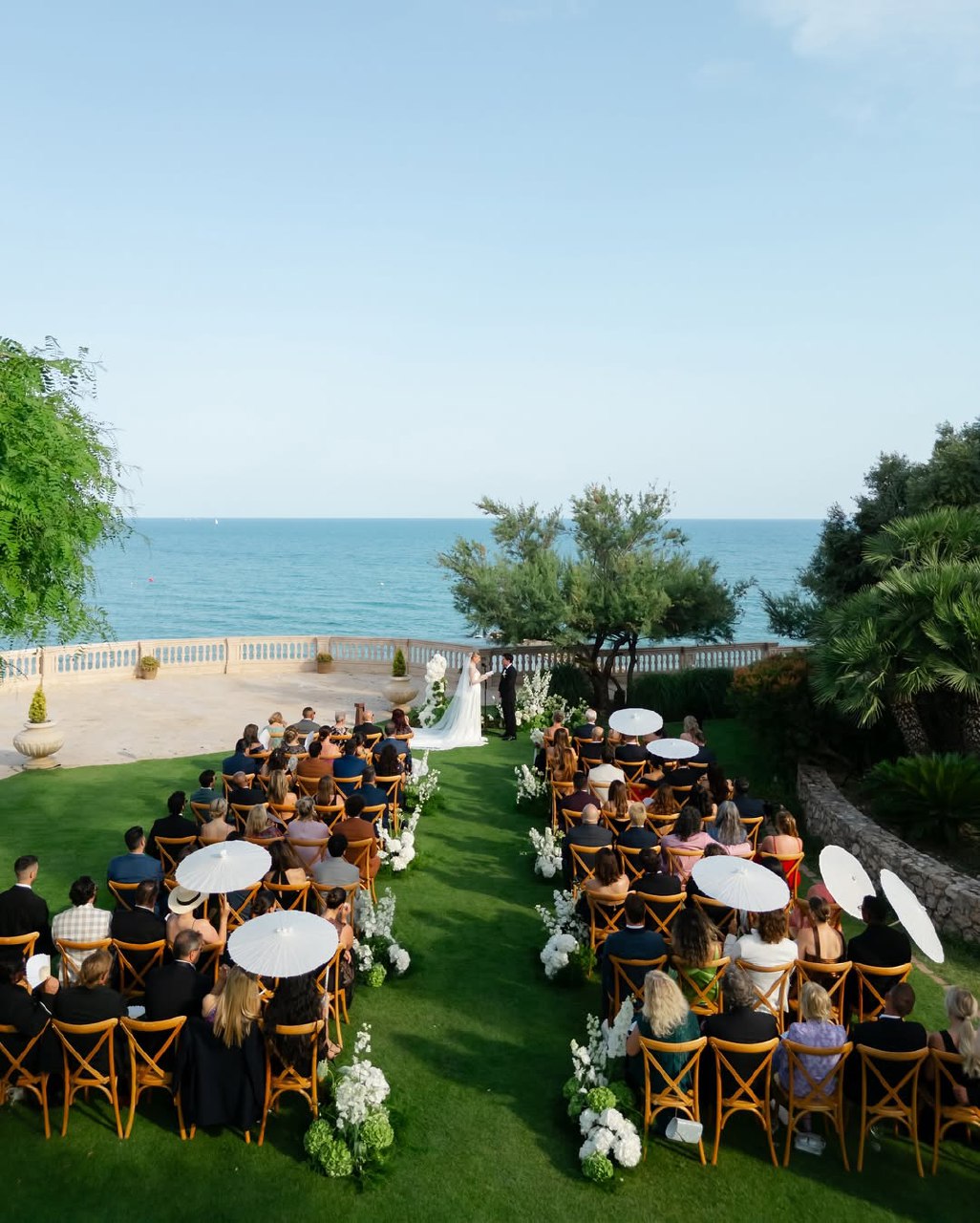 With this in mind, choosing the right outdoor wedding locationbecomes crucial. Not all venues are created equal. A successful celebration often depends on making an informed choice, not just booking the most attractive option. Private estates and villas offer creative control, free from municipal restrictions. This gives you the freedom to design your celebration exactly as you envision it. Gardens and botanical venues offer timeless elegance and built-in beauty. They require minimal decoration, as nature has already provided the aesthetic work. Beaches set the scene for relaxed destination weddings. Here, formality gives way to natural ease. Mountain and forest venues offer dramatic scenery, perfect for photography. Terraces and courtyards provide an open-air atmosphere with urban sophistication. They combine city refinement with the freedom of an outdoor wedding celebration.