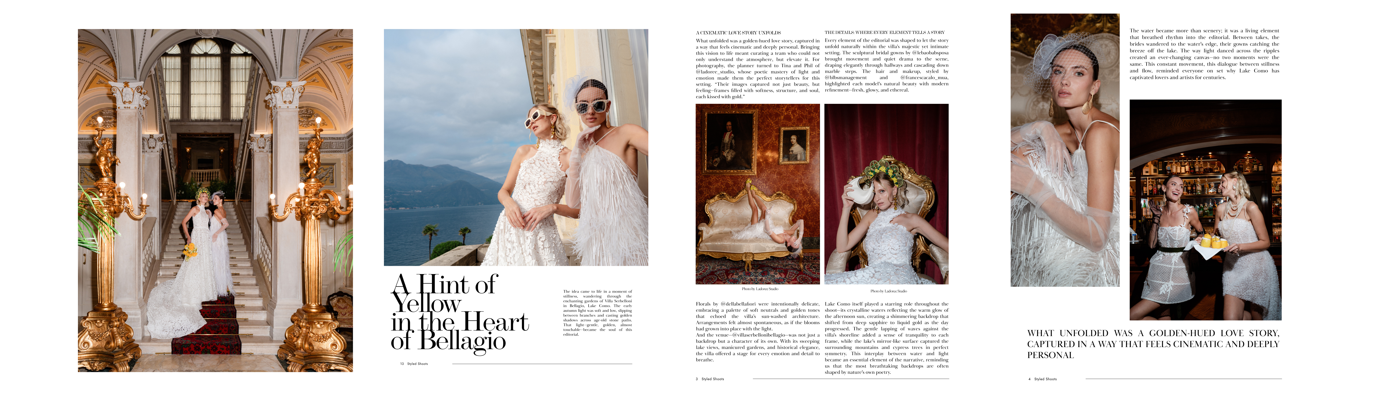 The idea came to life in a moment of stillness, wandering through the enchanting gardens of Villa Serbelloni in Bellagio, Lake Como. The early autumn light was soft and low, slipping between branches and casting golden shadows across age-old stone paths. That light—gentle, golden, almost touchable—became the soul of this editorial.