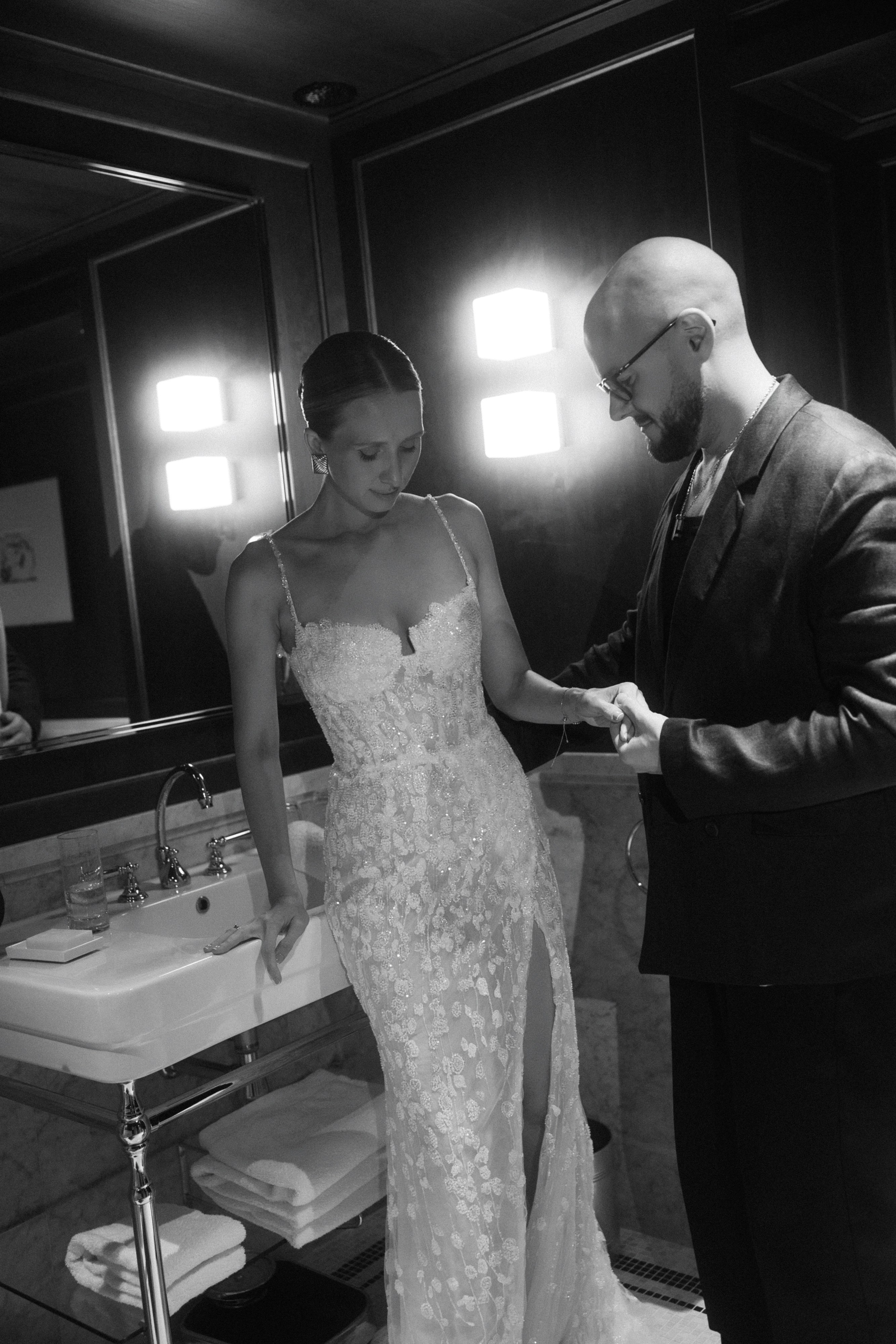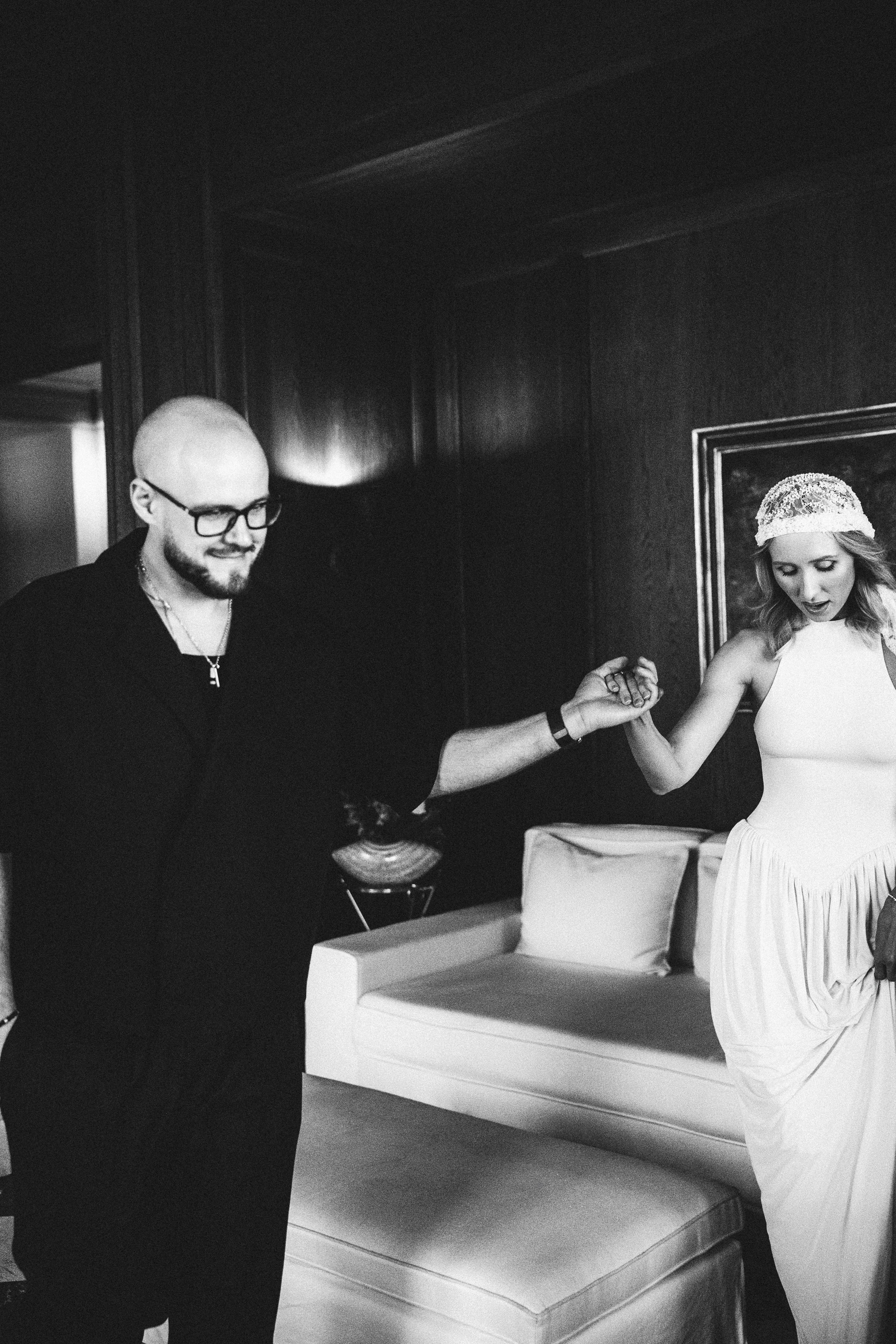 The team followed the story that was already there. They built the shoot around a real connection, a familiar city, and a mood that never needed to be forced. Bridal elements were added with restraint, including a headpiece that gave the classic veil a more modern direction. In the end, the shoot feels less like a production built for effect and more like a moment that unfolded naturally — cinematic, light, and believable.