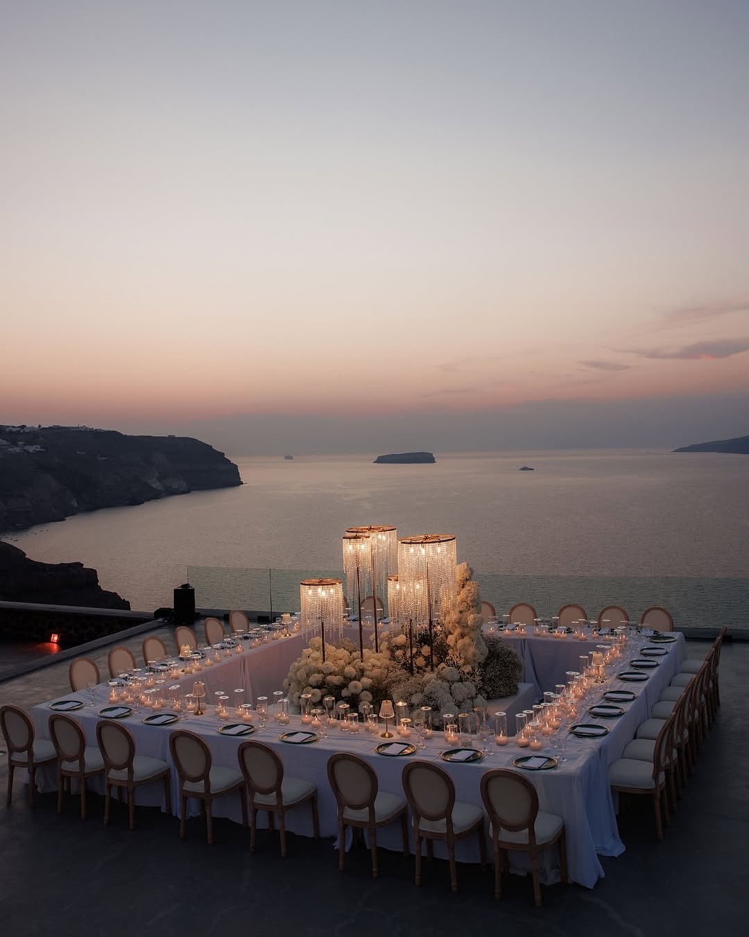 As the sun bathes the caldera in that legendary Santorini glow, dinner begins. The spacious grounds can accommodate your chosen seating arrangement for up to 130 guests, and the reception area offers those same breathtaking views of the caldera and Aegean Sea. Every course is served with a side of spectacular scenery.