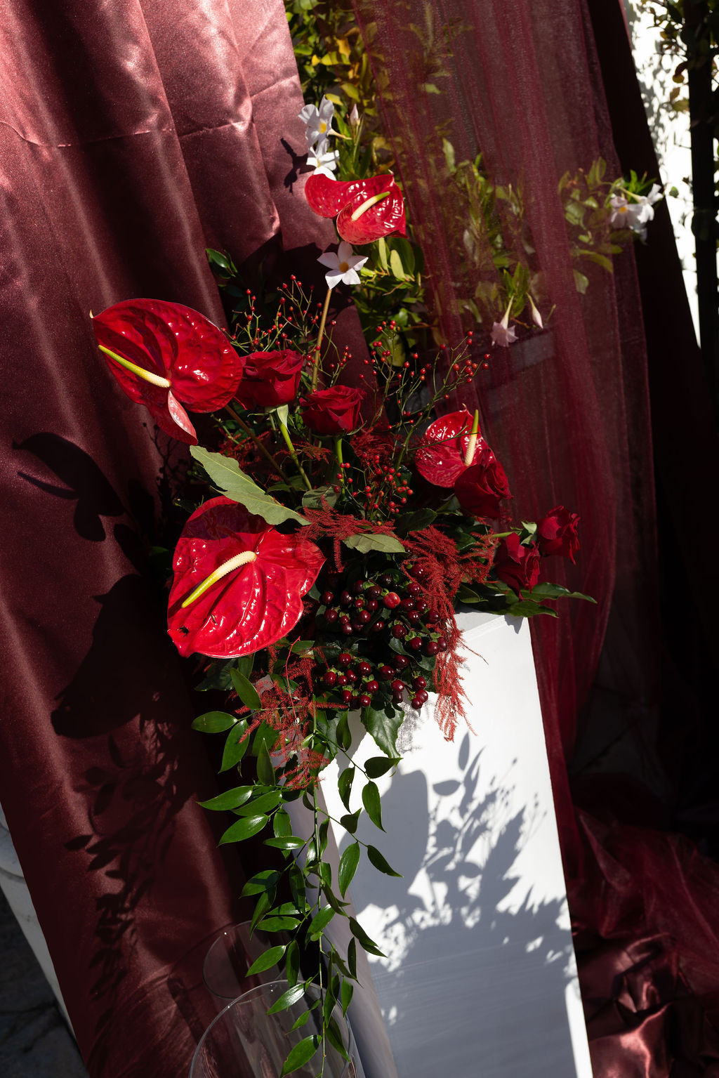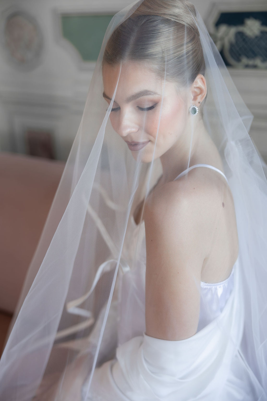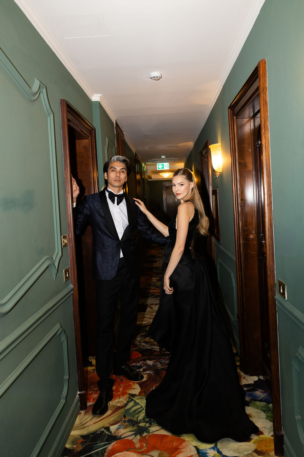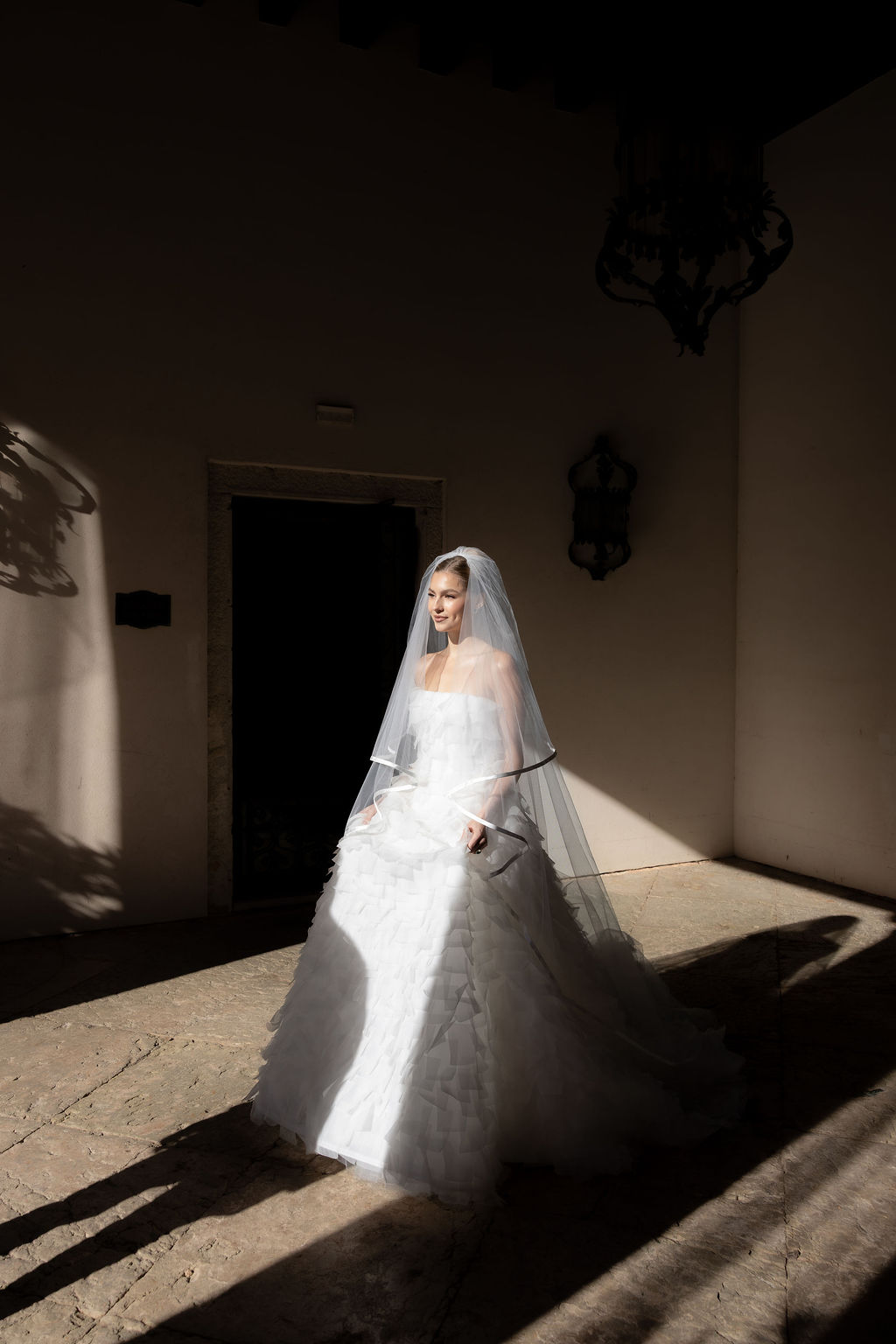 Milan-based designer Peter Langner created three gowns for the bride, all handmade in his atelier. His work is known internationally for architectural lines, refined minimalism, and the kind of impeccable craftsmanship you can see in every seam. The collection balances timeless elegance with contemporary design—one dress was conceived with a strong focus on sustainability, reflecting a more conscious approach to luxury.