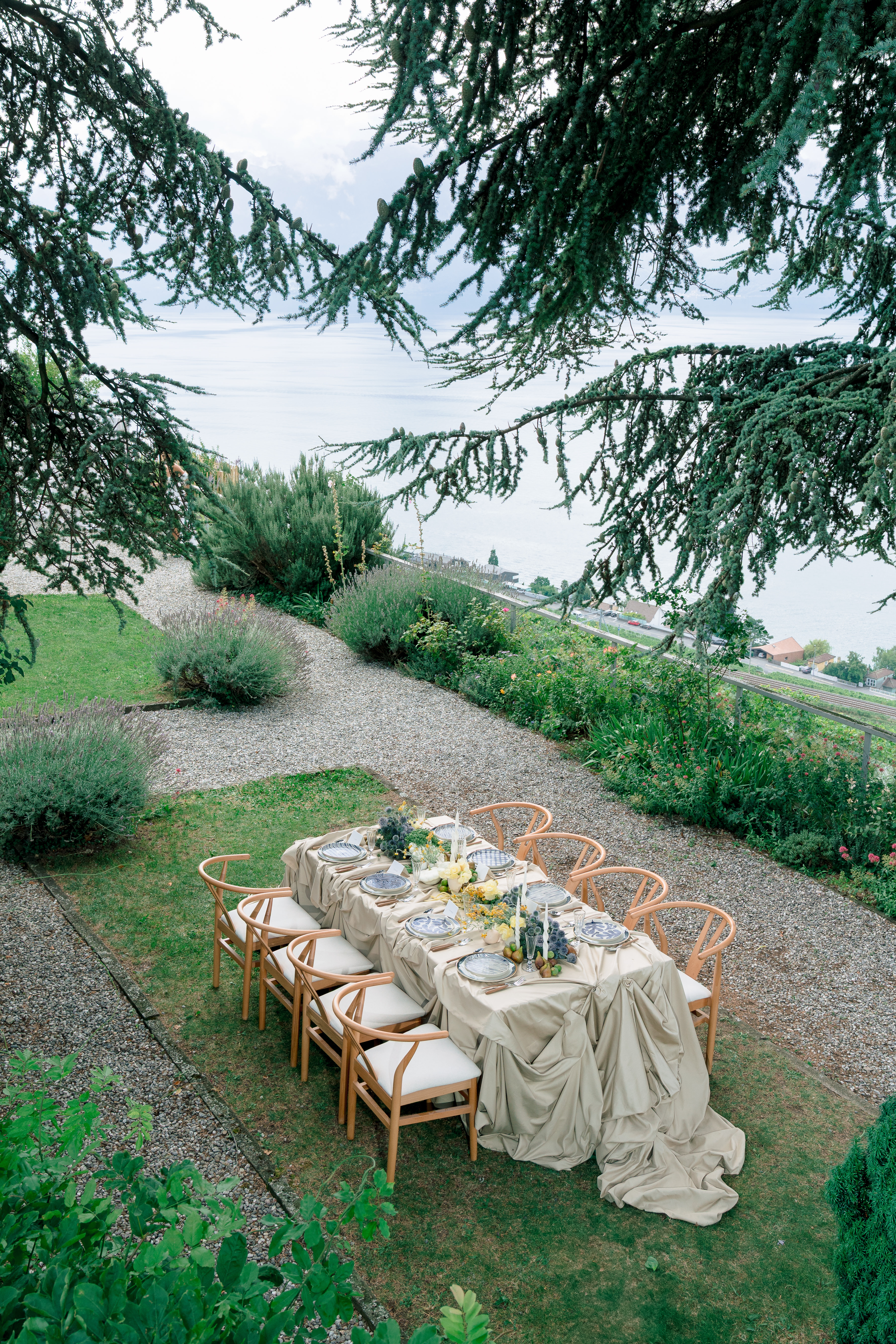 At the heart of this shoot lies Maison Buttin-de-Loës, a historic Belle Époque mansion that embodies everything we love about the Swiss Riviera. Perched above Lake Geneva with the Lavaux vineyards cascading below, this venue offers the kind of views that make you pause mid-sentence.