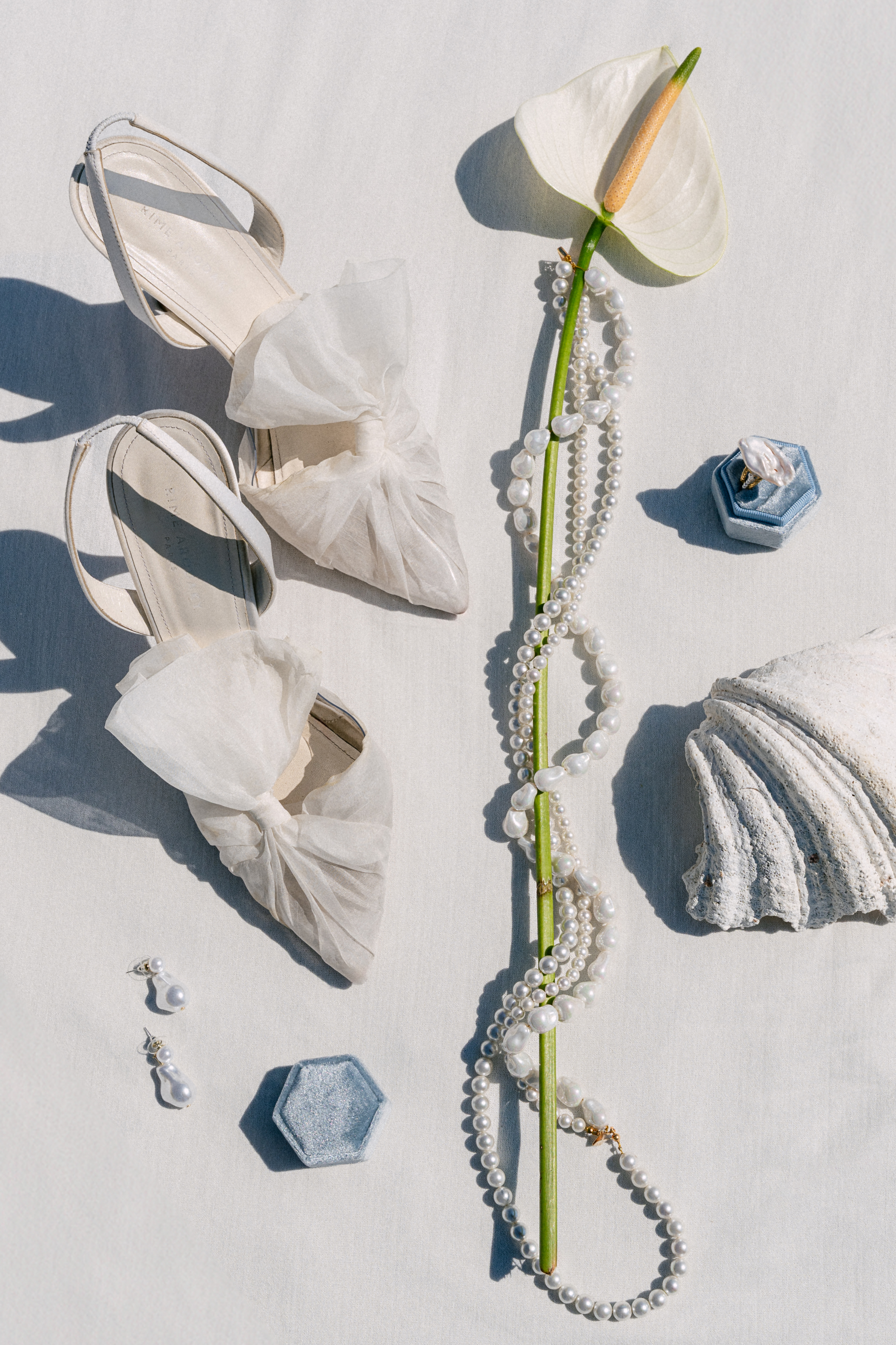 From stationery to jewelry, every detail in this shoot was carefully considered. Atelier Novem designed the refined stationery, keeping with the shoot’s graphic elegance. The stationery became an extension of the modernity and sophistication conveyed by the anthurium flower, its clean lines and minimalistic beauty elevating the overall aesthetic.