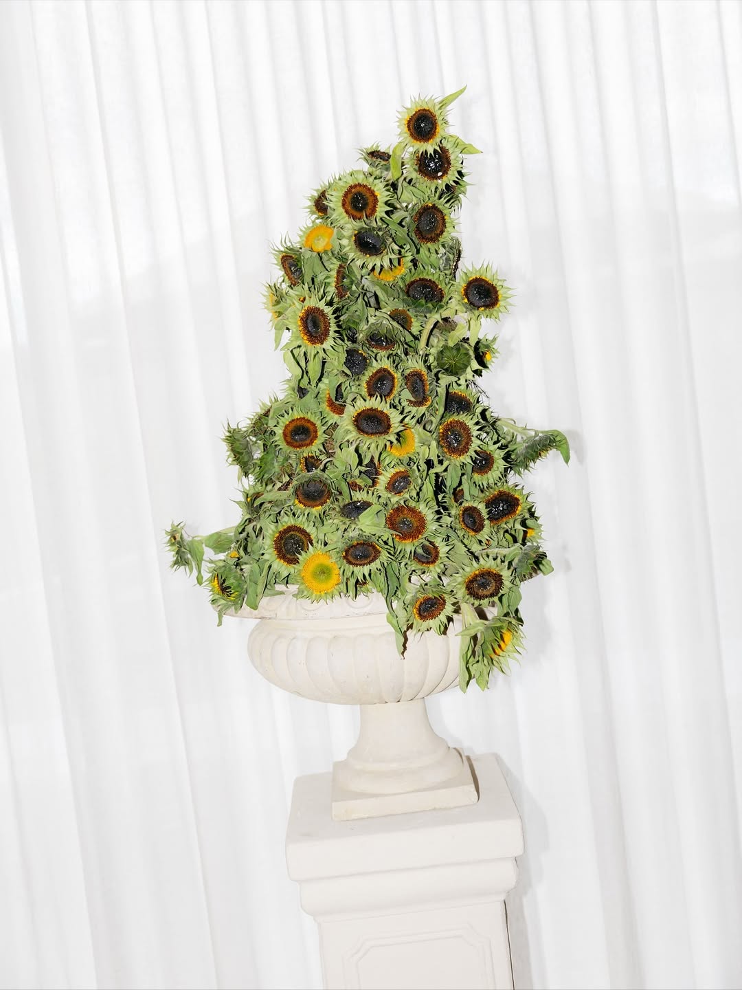 Forget rustic barns and mason jars—sunflowers in 2025 are taking on an architectural edge. Picture a towering arrangement in a white urn, almost sculptural in its design, where each bloom becomes part of a dramatic installation. The effect is bold, playful, and modern, with the sunny flower completely redefined as a luxury element.