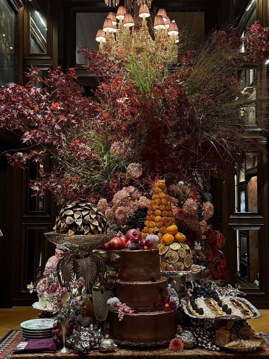 Your photos capture this mood perfectly: overflowing grapes in baskets, velvety florals spilling across tables, glowing candles in matching hues, and pomegranates cut open to reveal their ruby seeds. It’s not just décor—it’s a statement of indulgence.