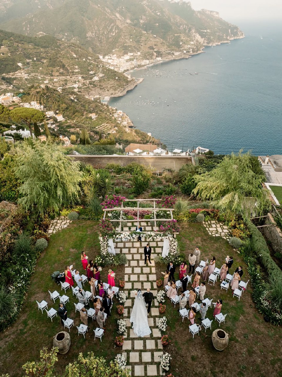 Stepping into Villa Cimbrone is like wandering through a romance novel you know you’ll never forget. Built atop a rugged promontory in Ravello, this villa sweeps across history, gardens, and sea vistas in a way that feels timeless—one of the most iconic Amalfi Coast wedding locations for couples seeking elegance and enchantment.
