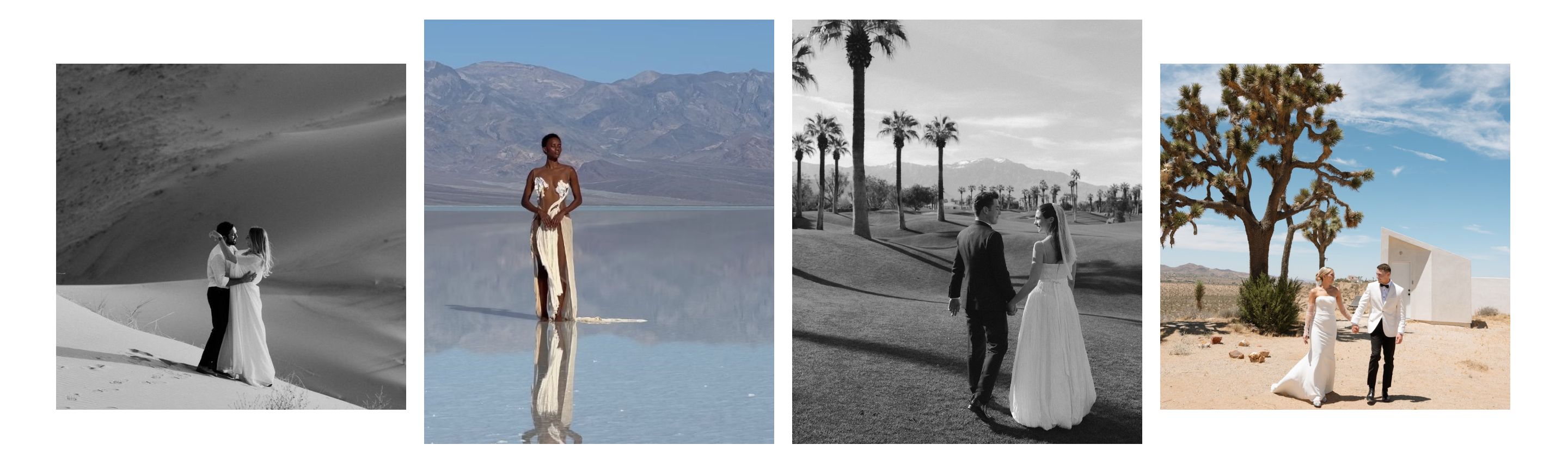 A wedding in the California desert offers an extraordinary and unforgettable experience, combining natural beauty with a sense of adventure and romance. The vast, arid landscapes provide a stunning backdrop for capturing unique and memorable moments, from the iconic Joshua trees in Joshua Tree National Park to the surreal dunes of Kelso. The endless horizons and dramatic vistas of Death Valley create an awe-inspiring setting, while the elegant and luxurious ambiance of the Sands Hotel & Spa adds a touch of sophistication to the celebration. The desert's serene and expansive environment allows couples to create intimate and personal photographs, enriched by the warm hues of sunrise and sunset.