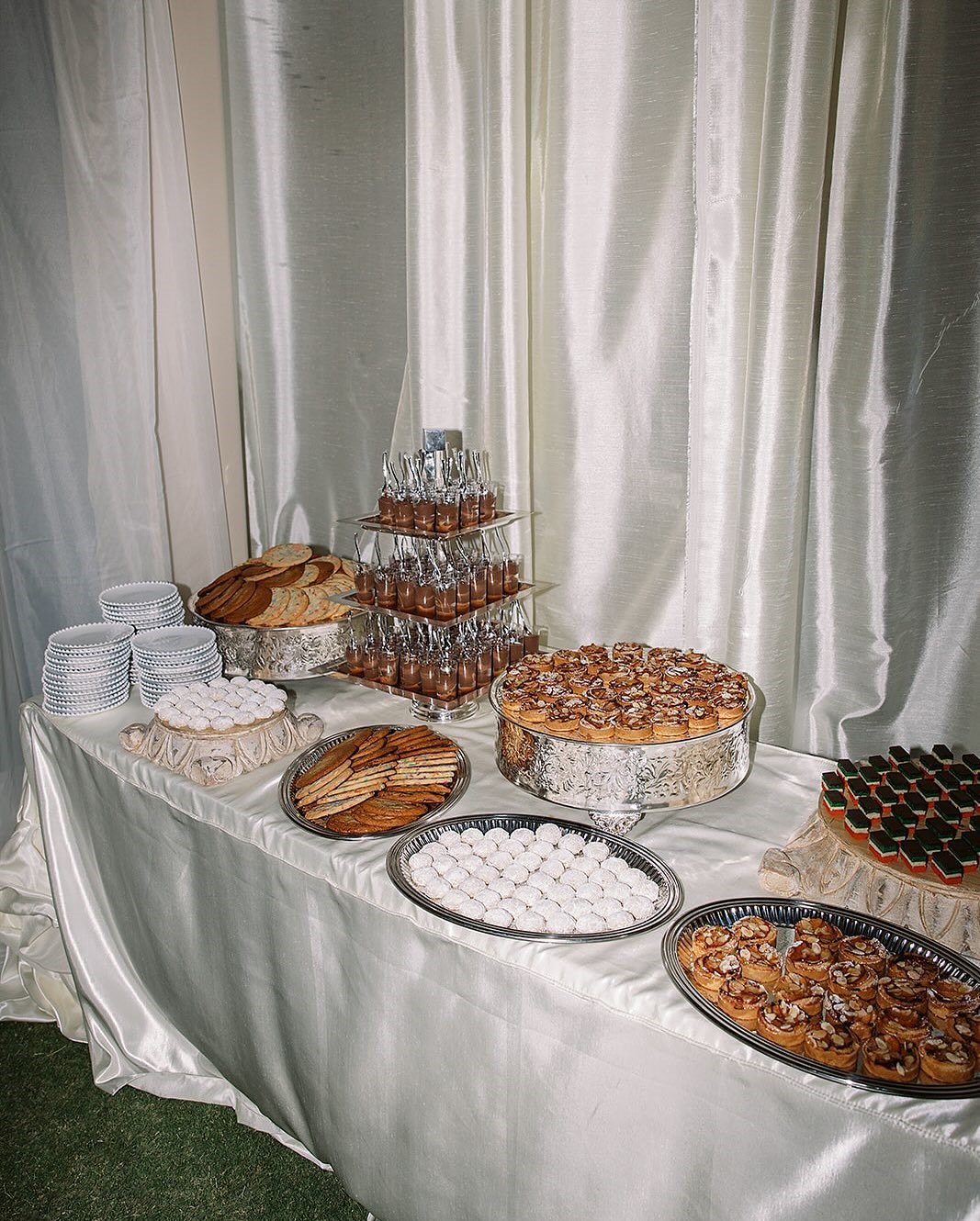 Choosing what to wear to a Cloud Dancer-palette wedding gives you plenty of options. The soft, neutral setting means almost any color works well. Pastels fit in easily, muted jewel tones add a bit of color without standing out too much, and even black can look stylish instead of too serious. The main thing to watch out for is avoiding neon or very bright colors, since they can look out of place. Pure white might compete with the bridal party, though it’s less of a focus here, and very dark colors can look too harsh in photos unless you want a strong contrast. Pastel dresses are a great choice for guests. Think of lavender that’s almost silver, a soft blush pink, or sage with a muted tone. This color scheme is so flexible that you can wear what you like and still look good in group photos. The overall effect is a gentle, unified look where everyone fits the mood while still keeping their own style.