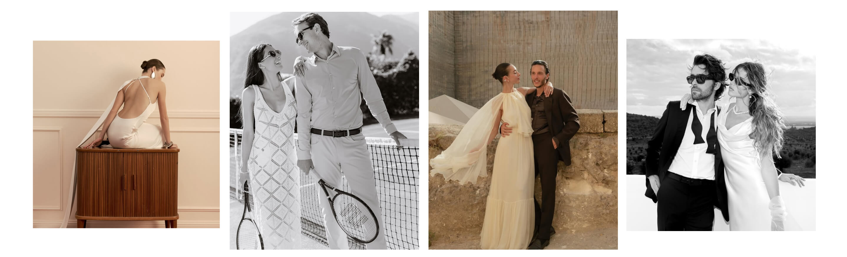 Choose tailored suits and cocktail dresses with clean lines and minimal fuss. These pre-wedding photoshoot looksare suitable forany couple because they are timeless in style. Go for a well-fitted suit in navy, charcoal, or black, and pair it with a simple sheath dress or sleek separates. Focus on fit and quality fabrics like crisp cotton, structured wool, or smooth silk. Make sure everything fits perfectly. This style works well in studios, modern buildings, or clean urban spaces. Remember, formal doesn’t have to be boring. Show your personality with interesting textures, a bold lip, or unique shoes.