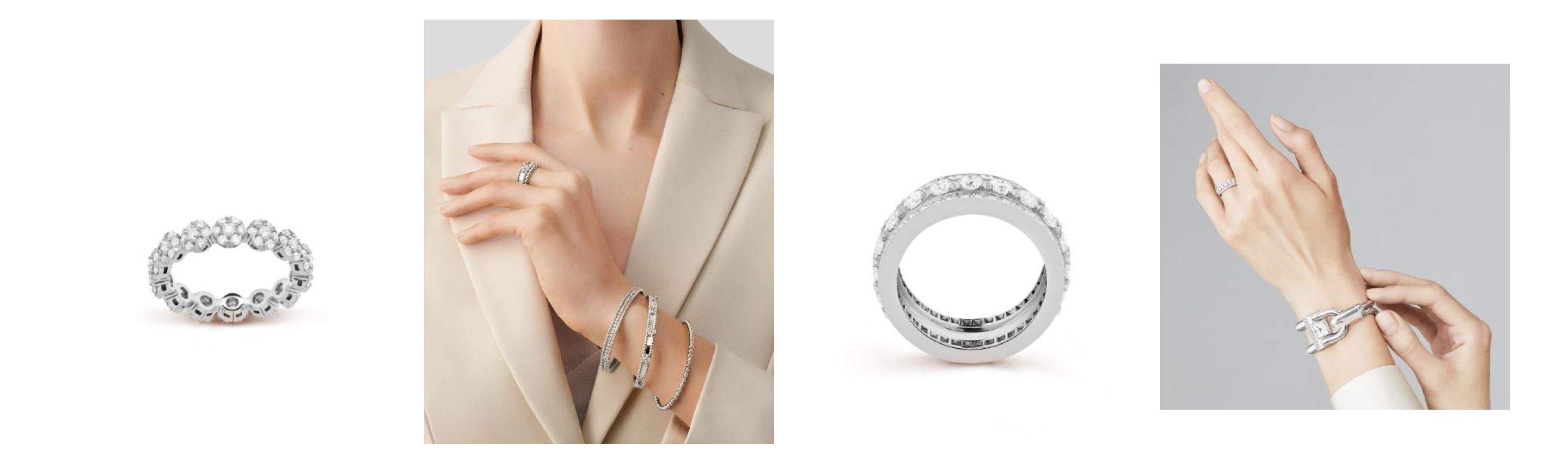 Each Romance ring is meticulously designed to reflect the brand’s dedication to exquisite craftsmanship and artistry. The smooth, flowing lines of the band symbolize the seamless connection between two souls, making it a meaningful representation of enduring love. The Romance ring’s timeless appeal and sophisticated design make it a versatile piece that complements any engagement ring. This elegant creation from Van Cleef & Arpels is not just a piece of jewelry but a treasured keepsake that will celebrate and commemorate a lifetime of love and devotion.