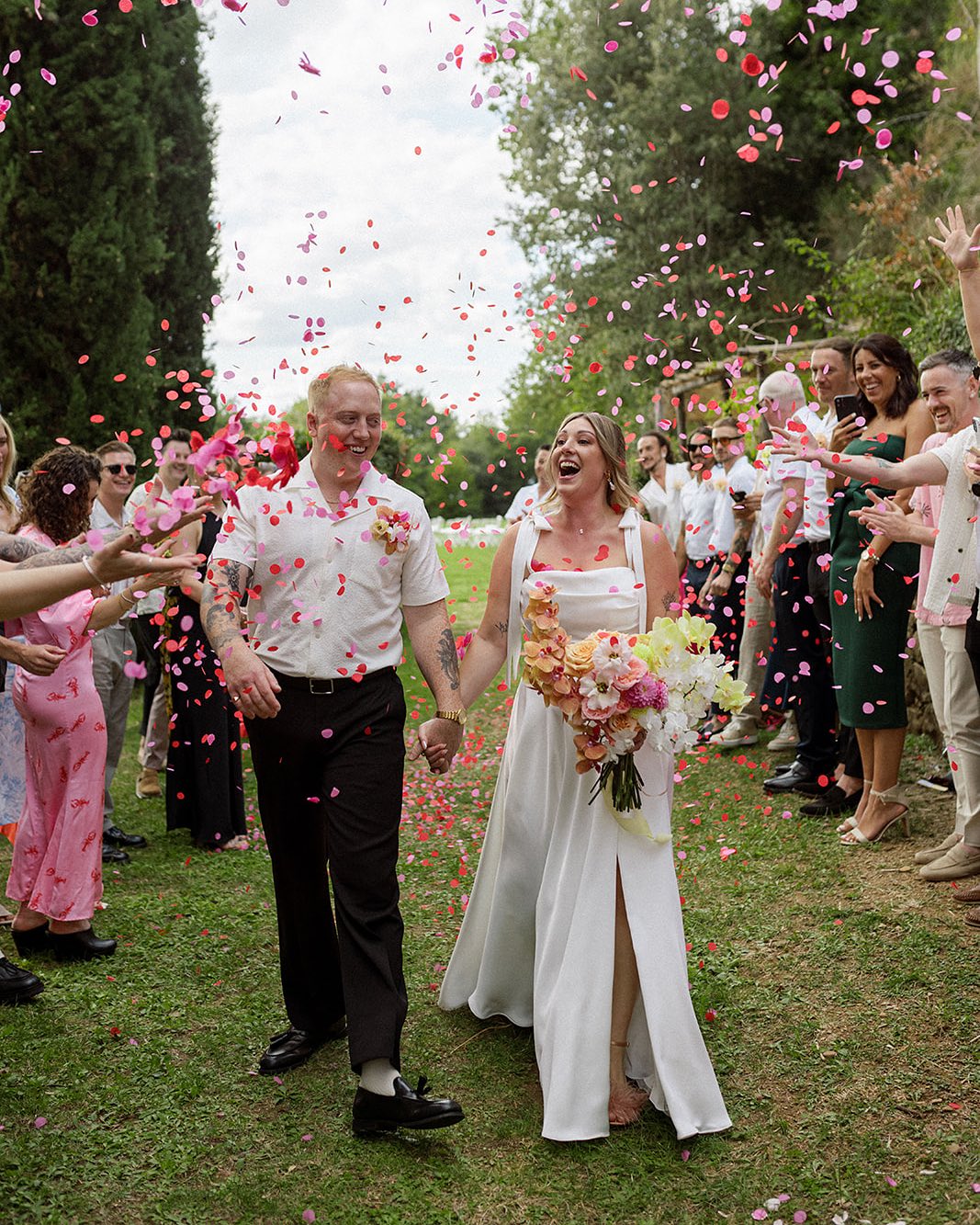 Her philosophy is refreshingly direct: "My advice is to always start with you—not with what's 'usually done.'" We’ve seen couples who walked backwards down the aisle because that's how they met (literally bumping into each other), ceremonies conducted entirely in two languages, and brides who entered alone because they damn well wanted to. "The most emotional ceremonies are rarely the most formal or flawless ones,"Sara observes. "They're the ones that feel real—where every choice reflects the couple's story, values, culture, or simply their way of being in the world."