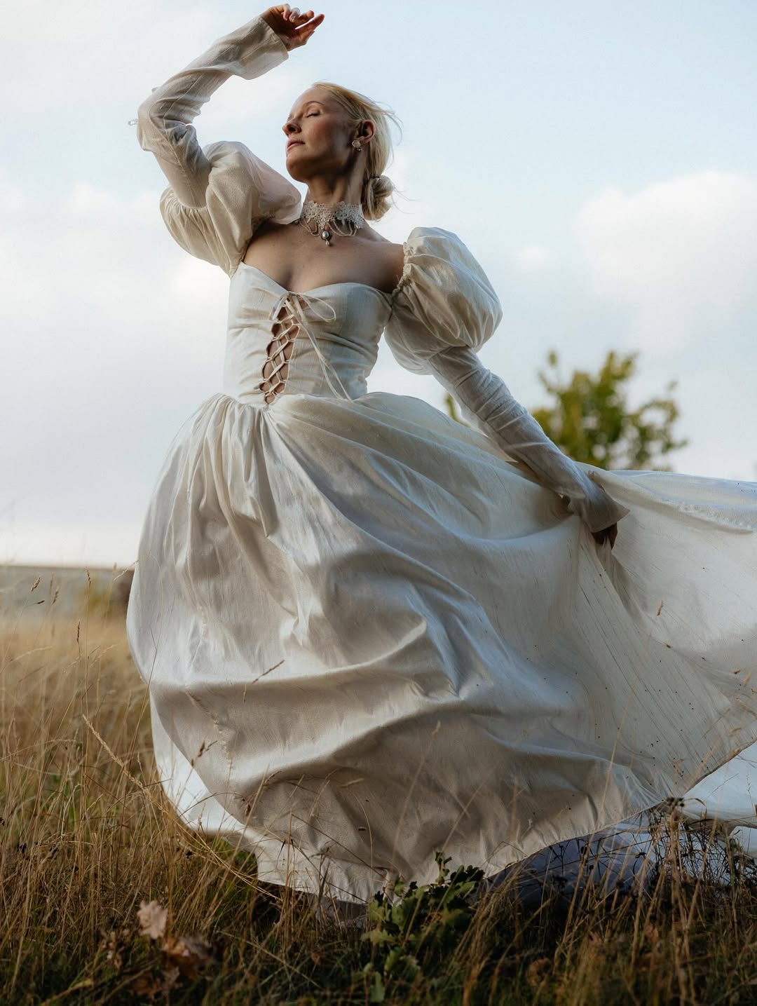 | Corset + Airy Drapery | Bust support, hourglass, pear | Traditional or elegant indoor weddings | Front portraits, soft light |