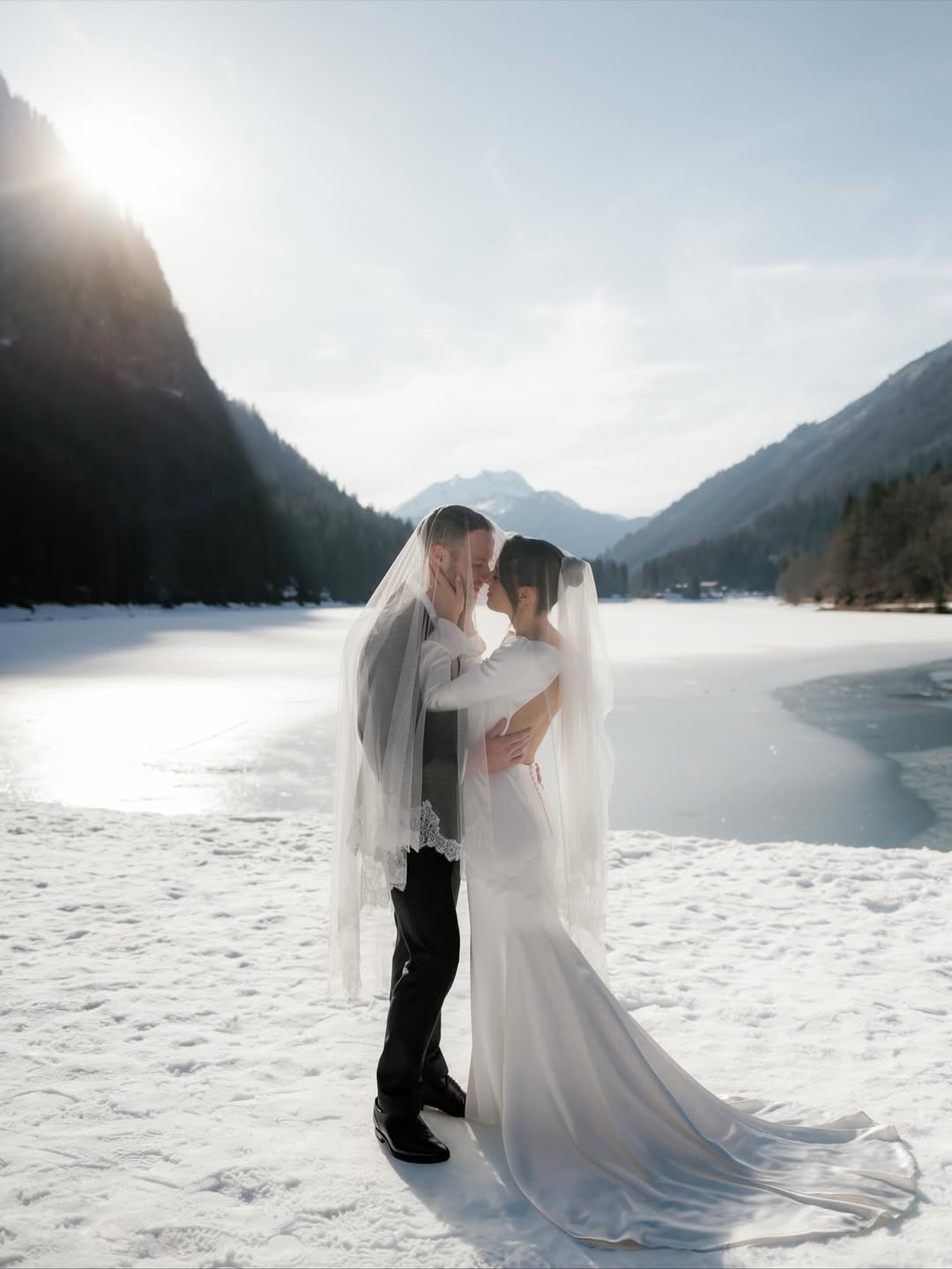 Winter French Alps weddings take place from December to March. January and February offer the most reliable snow. The aesthetic is entirely different: fresh powder, frosted trees, fairy-tale mountains, and winter light that produces ethereal photographs. The romance is undeniable: arriving as snow falls, ceremonies by fireplaces, and receptions that start with outdoor activities and move to warm indoor celebrations.