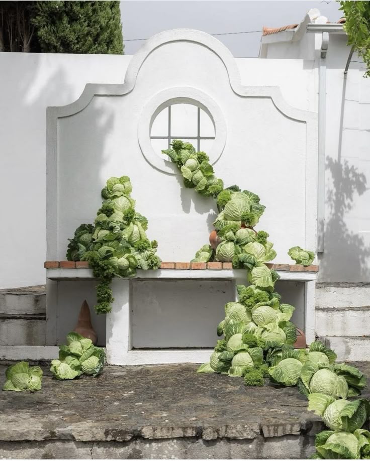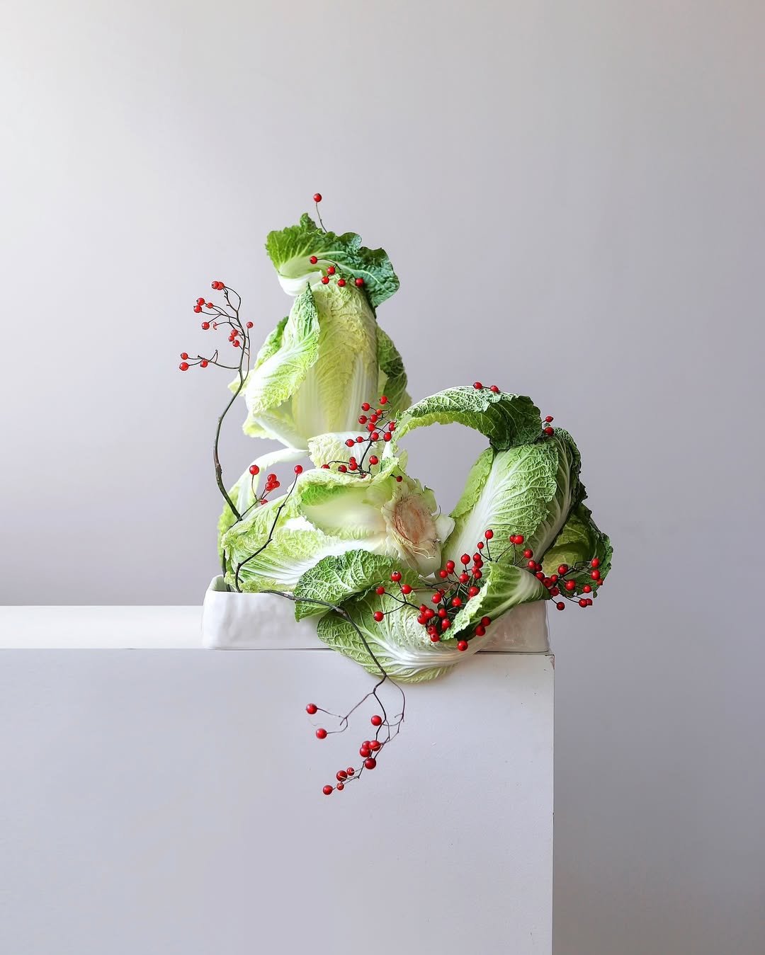 - Garden Abundance: Use cabbages, kale, and lettuces en masse for a bold statement — it feels whimsical, natural, and a little bit avant-garde.