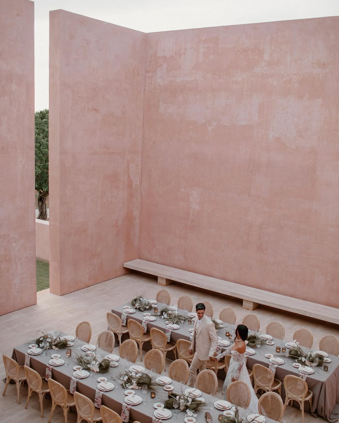 Mediterranean chic embraces the island's inherent character, incorporating whitewashed walls, natural materials, and local flowers such as bougainvillea, olive branches, and citrus fruits. Colour palettes are inspired by the landscape, incorporating shades of terracotta, sand, deep blue, and olive green. The styling feels organic rather than contrived, as if you gathered elements from the immediate environment and arranged them simply. Tables are dressed with linen in neutral tones, and centrepieces incorporate local ceramics, creating an elegant yet unpretentious overall effect. This style photographs beautifully because it blends in with the setting — nothing looks out of place because everything belongs.