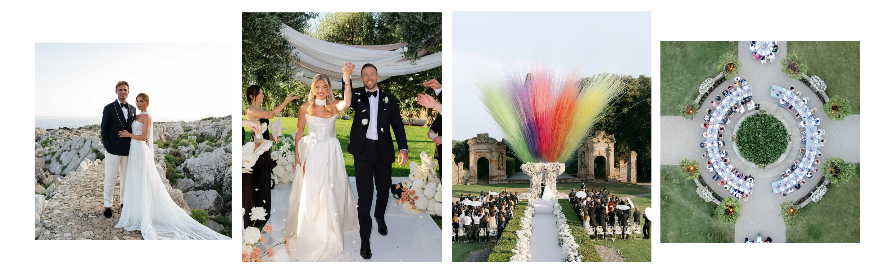 Destination Glamour: Leveraging the location as the primary design element. This could be a moonlit wedding celebration under the night sky, a coastal ceremony where the ocean dominates the view, or a mountain wedding where the landscape provides drama. The location is the concept.