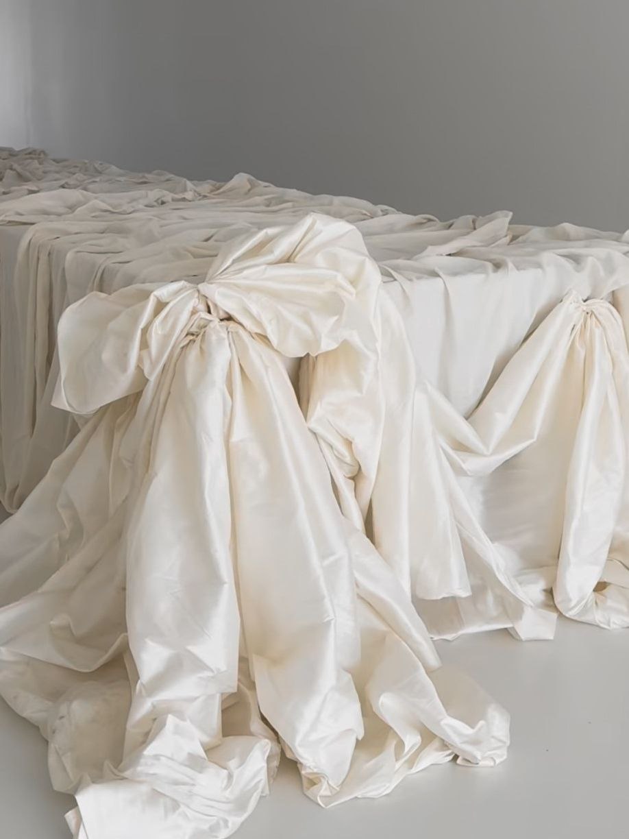 Oversized silk bows as centerpiece toppers create height and visual interest without blocking conversation across your tables. These statement bows can anchor your entire tablescape design while maintaining that romantic, feminine touch that makes everything feel special and celebratory.