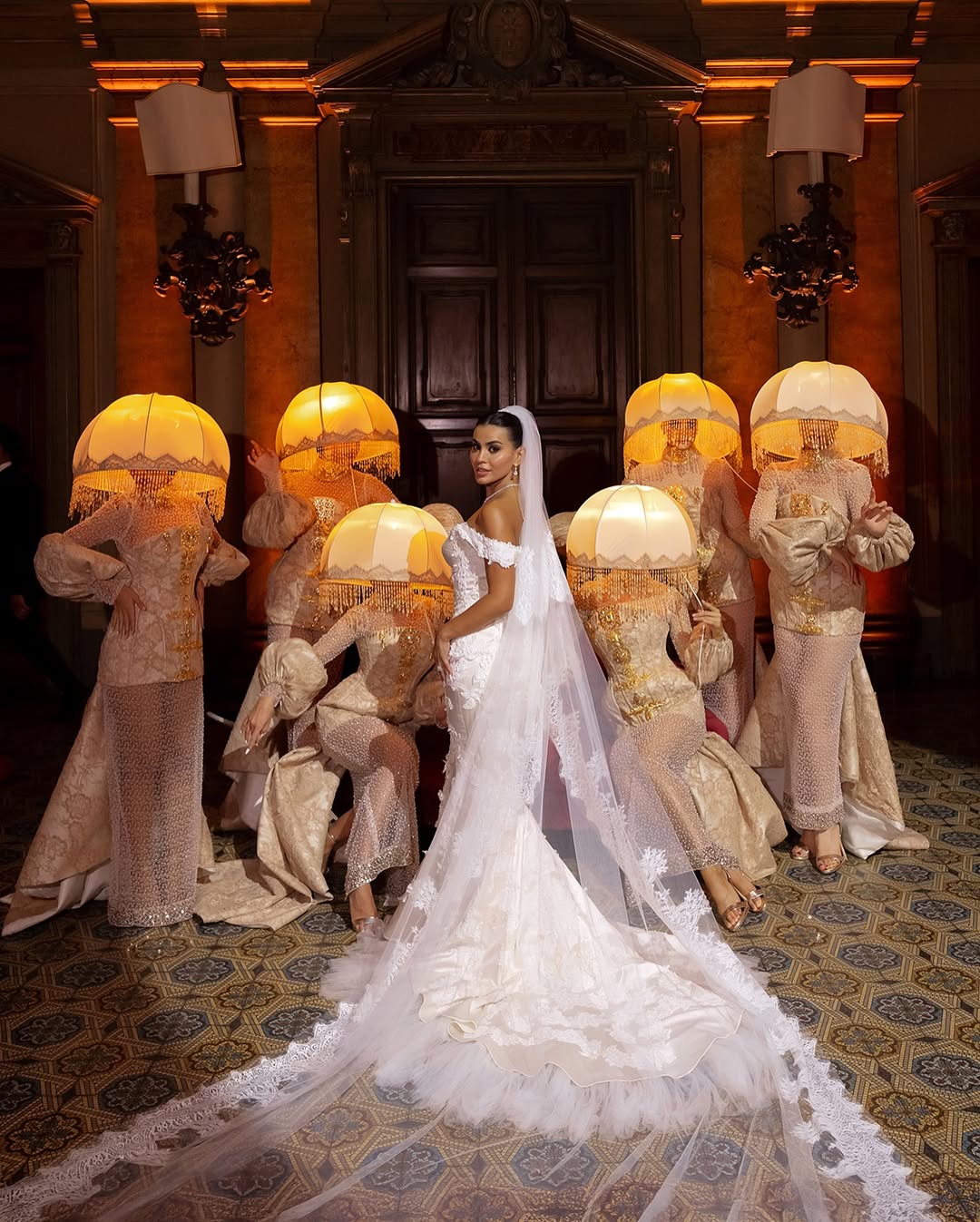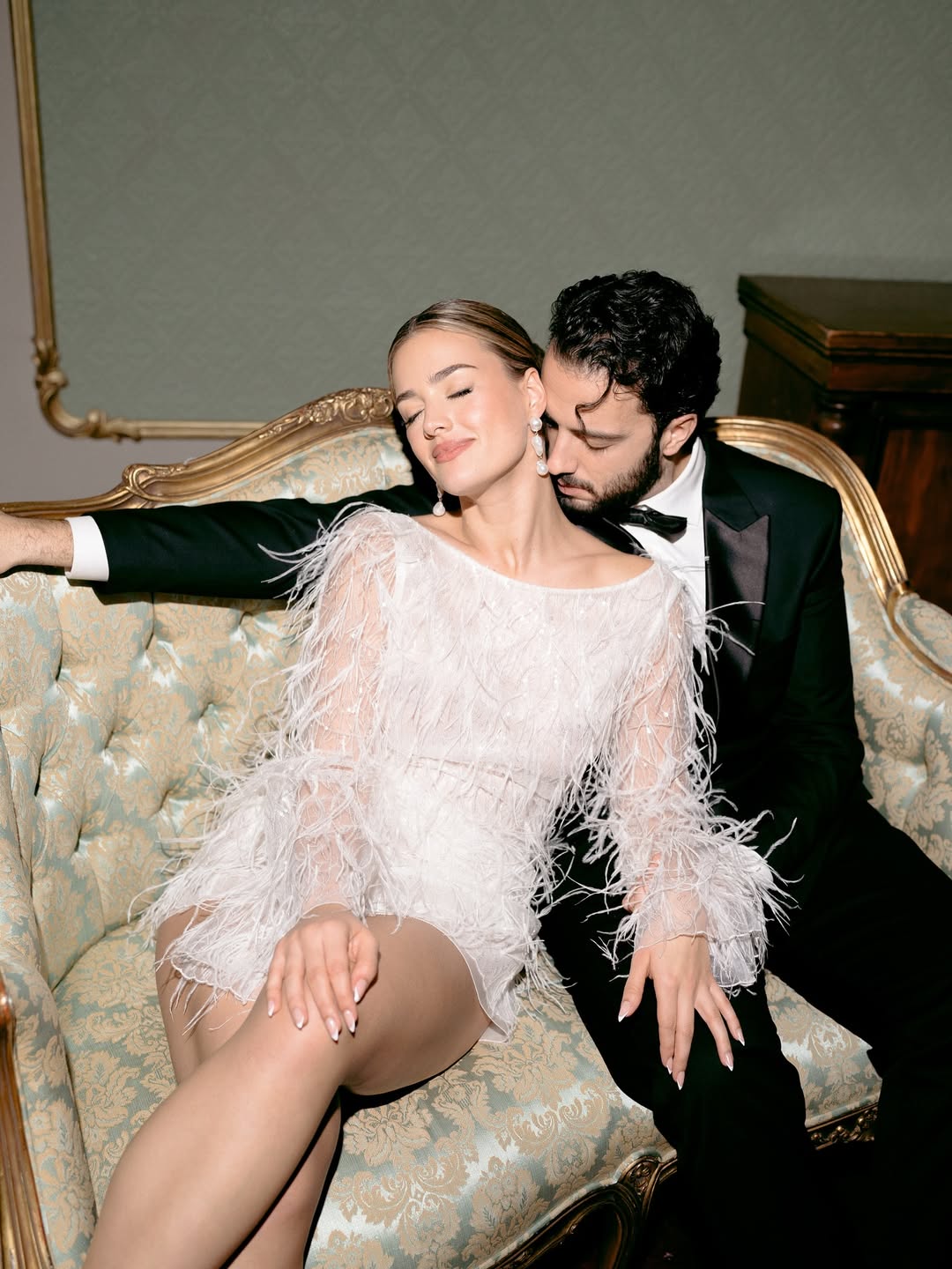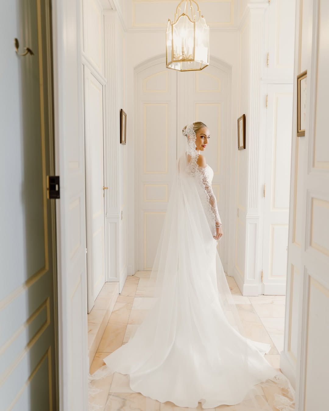 Symmetry is especially effective in indoor wedding photoshoots. A centered composition, a couple perfectly positioned within a doorway, standing on the axis of a symmetrical hallway, creates a formal elegance difficult to achieve outdoors. The limited space allows for precise positioning of subjects: they can be placed where architectural lines converge, where the light falls most effectively, and where the geometry of the space serves rather than contradicts the image.