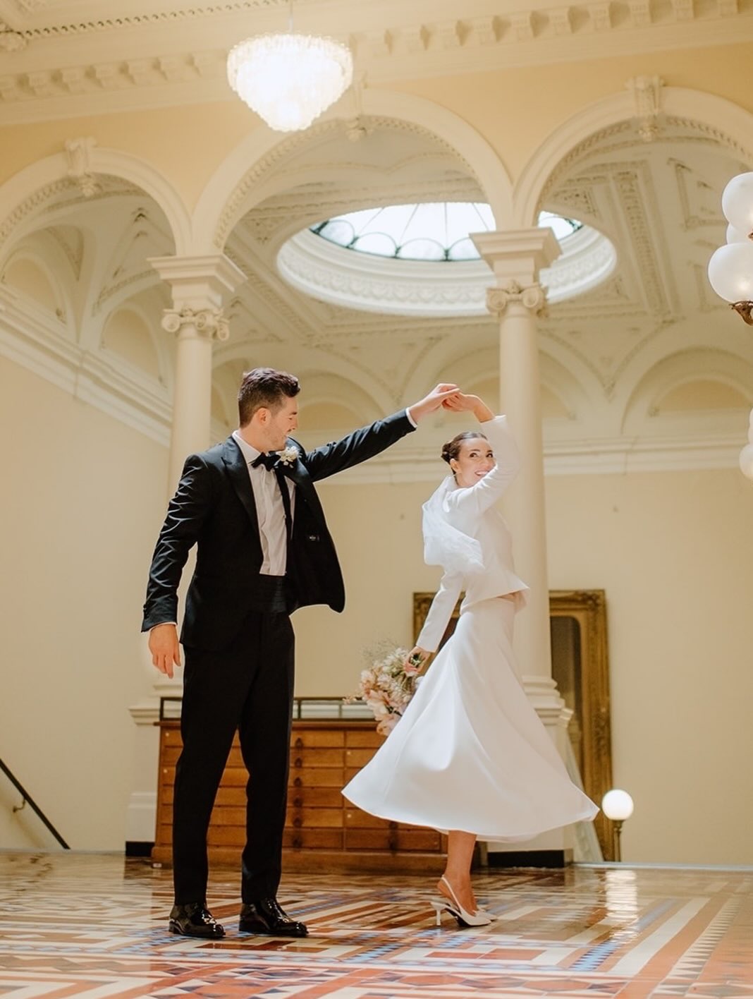 Indoor wedding photos don’t have to be still or serious. Hallways can become runways, staircases add variety in height, and old elevators with gates and brass details make unique spots for lively photos. Shots of a couple walking quickly, a bride spinning in her dress, or a group squeezed together in a small space all bring energy and closeness to your photo collection. Indoor wedding photographycan borrow from fashion photography by adding movement and personality. For example, a groom loosening his tie in a marble bathroom, bridesmaids laughing in a hallway, or a couple dancing in an empty ballroom all feel lively and real. Instead of stiff poses, use prompts like "come here," "look over your shoulder," or "turn and stop" to encourage natural movement and expression. The relaxed vibe of a post-wedding party works well indoors, with dim lighting and people enjoying themselves. Some shoots even play music or encourage dancing to capture that joyful, carefree feeling.