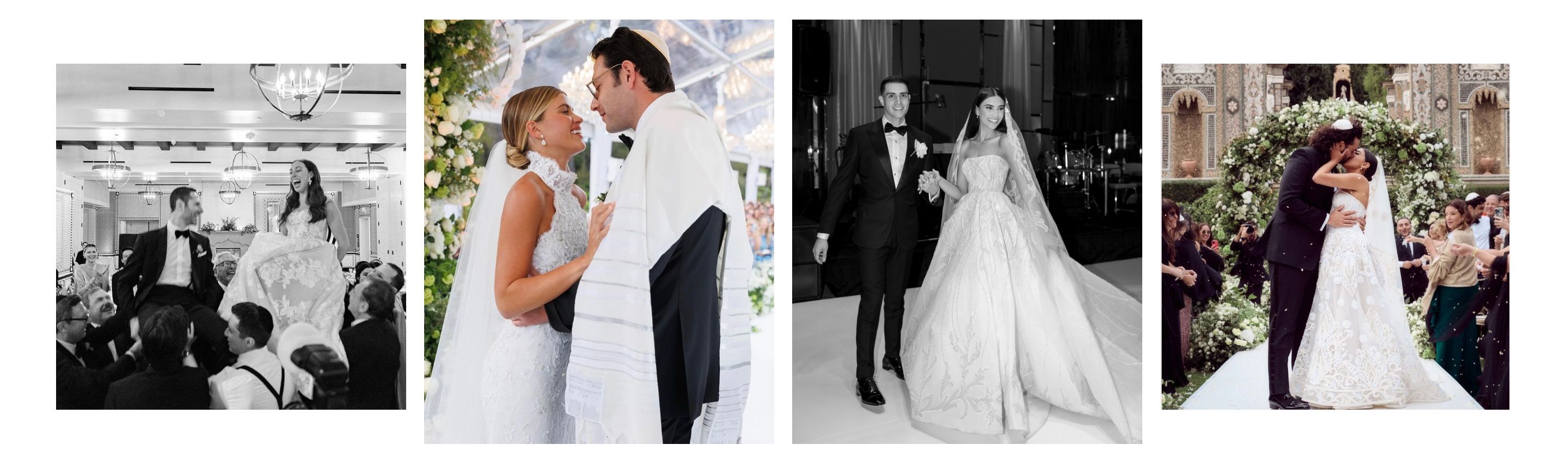 Jewish wedding fashion beautifully blends ancient origins and modern styles. For Jewish brides, gowns are typically modest, yet elegant and trendy. Some incorporate blue tones or other Jewish elements. The classic Jewish bride wears a stunning white dress, evoking purity and new beginnings.