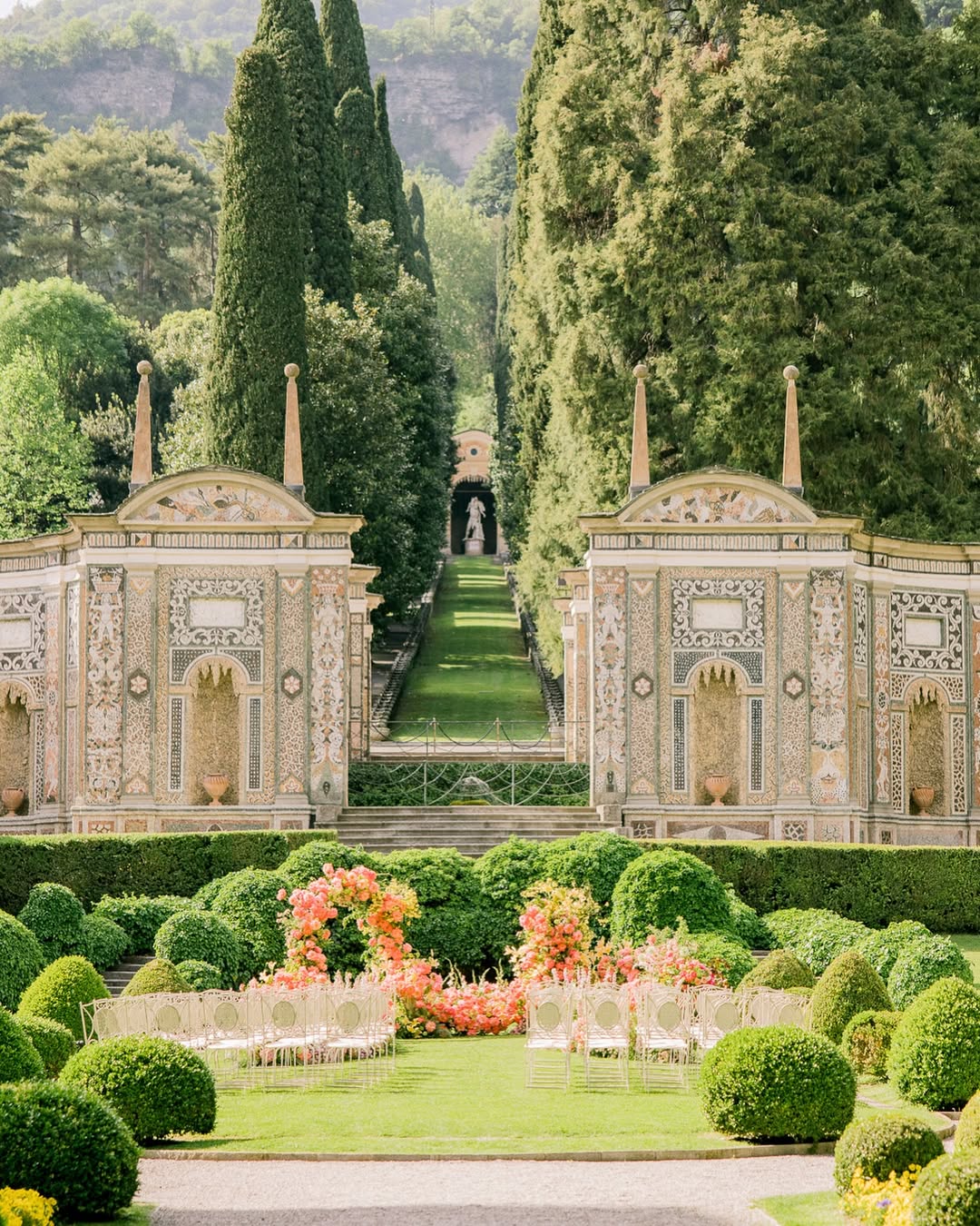For couples seeking symbolism beyond words, the Mosaic Garden offers sacred ground unlike any other. Here, where Italian horticultural tradition meets artistic genius, the spectacular Nymphaeum creates a natural altar that renders traditional decoration almost unnecessary.