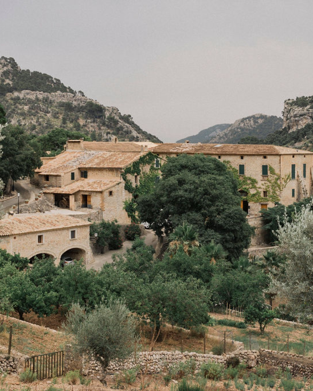Tucked away deep in the valley, where the air is perfumed by citrus groves and mountains frame every view, this authentic finca embodies everything people dream of in rural Mallorca. There are weathered stone buildings with wooden shutters and terraces shaded by ancient trees, with the constant backdrop of orange and lemon orchards stretching towards distant peaks. The aesthetic here is unpretentious elegance: long wooden tables under string lights and wildflowers in ceramic pitchers — the kind of beauty that feels gathered rather than designed. Mornings arrive with birdsong and the scent of blossom, while evenings settle into a golden hour that seems to last forever in the valley's sheltered basin. This is the perfect venue for couples who want their celebration to feel organic and authentic, with a true Mediterranean feel.