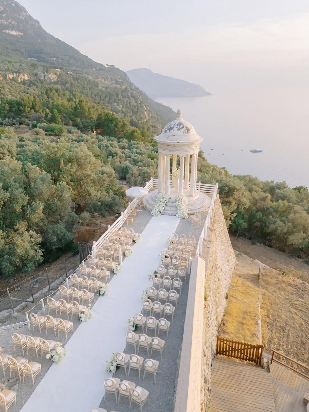 Perched on dramatic cliffs where the Tramuntana Mountains meet the sea, Son Marroig is more than just a venue; it's a part of Mallorcan mythology. The estate's famous marble rotunda, a neoclassical pavilion suspended above the Mediterranean, has witnessed countless sunset ceremonies, each one framed by the impossibly blue horizon. Stone pathways wind through manicured gardens, offering different perspectives of the coastline below at every turn. The mansion itself carries centuries of history within its walls and exudes an old-world elegance that requires no embellishment. It is the epitome of refined, classical beauty — the kind that looks like a Renaissance painting and makes you feel as though you have stepped into a more graceful era. It is perfect for couples who are drawn to timeless sophistication and iconic views that require no introduction.