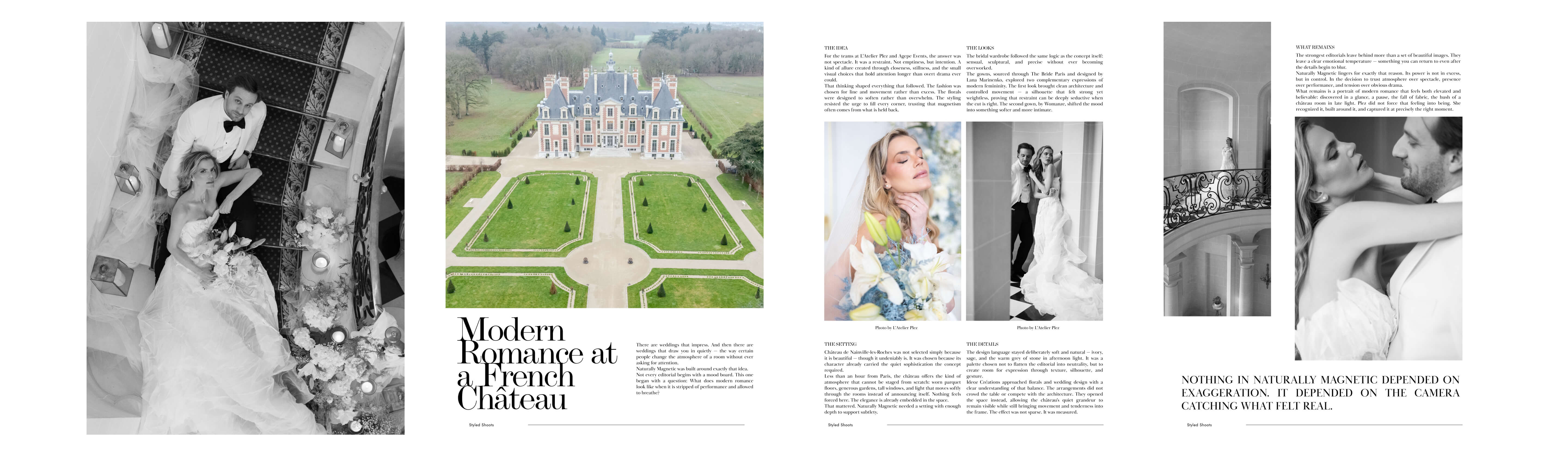 That contrast was important. Rather than relying on a single bridal look to carry the entire editorial, the styling showed how magnetism can take many forms: composed and striking in one moment, tender and almost private in the next.