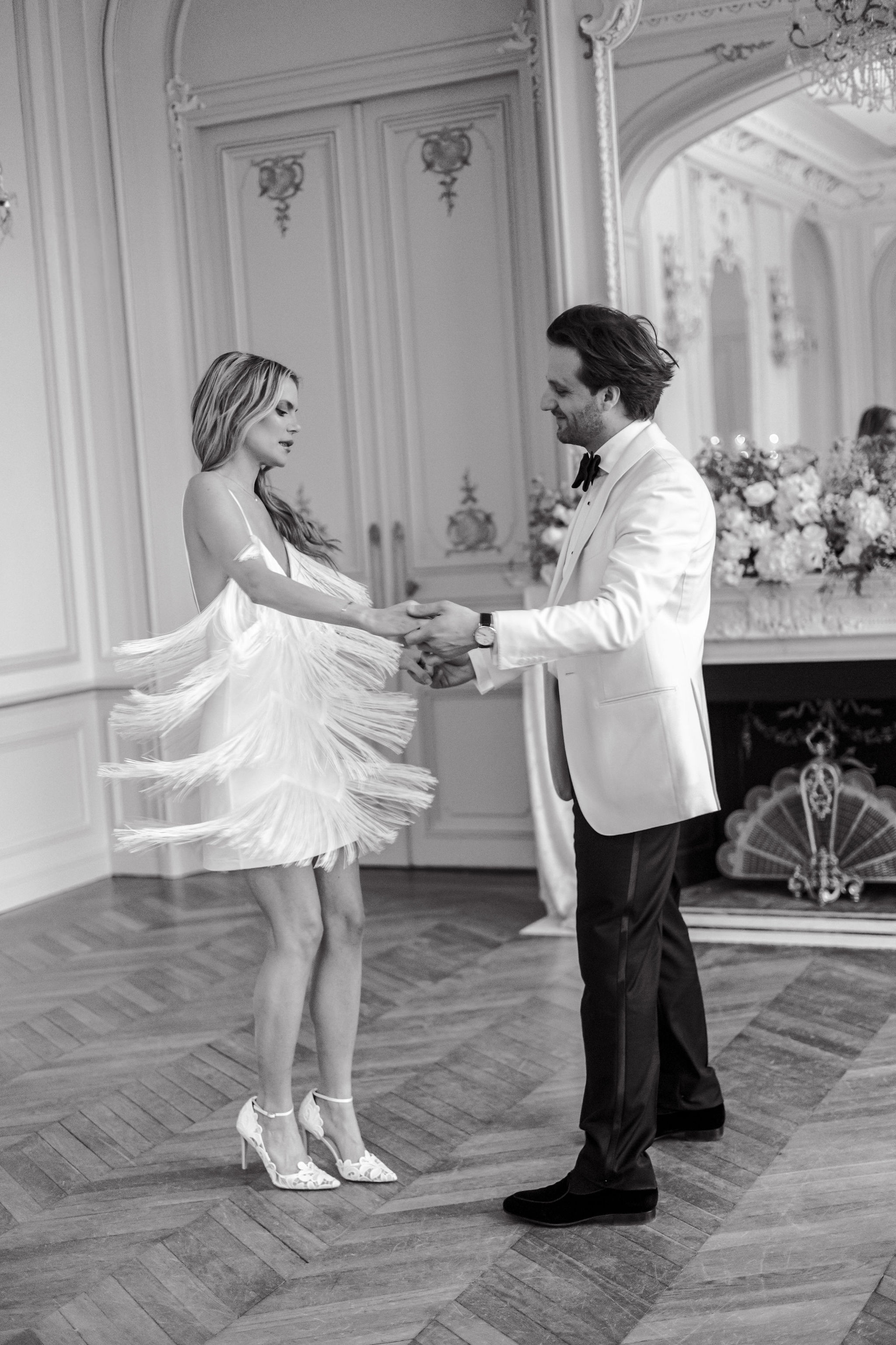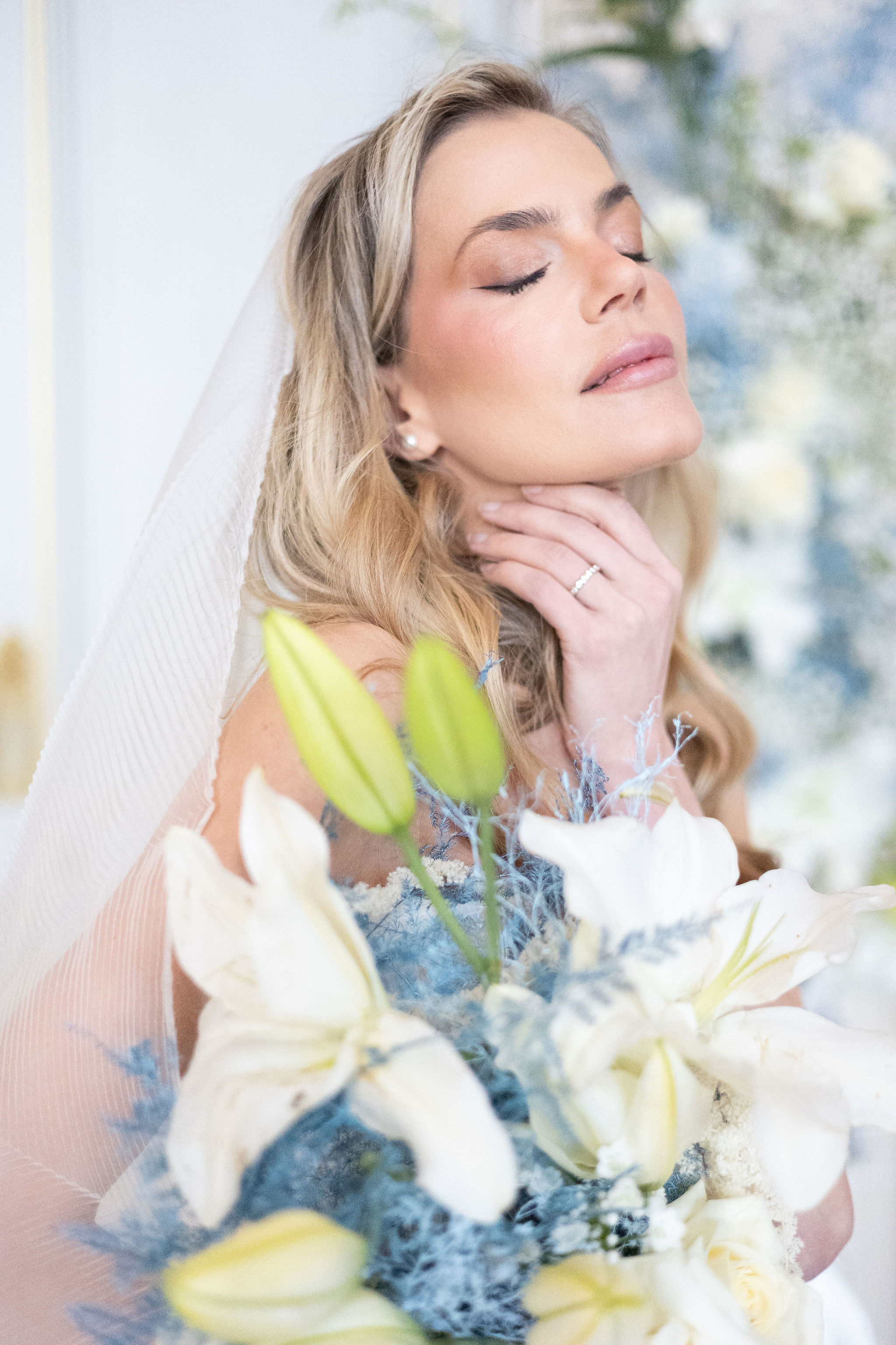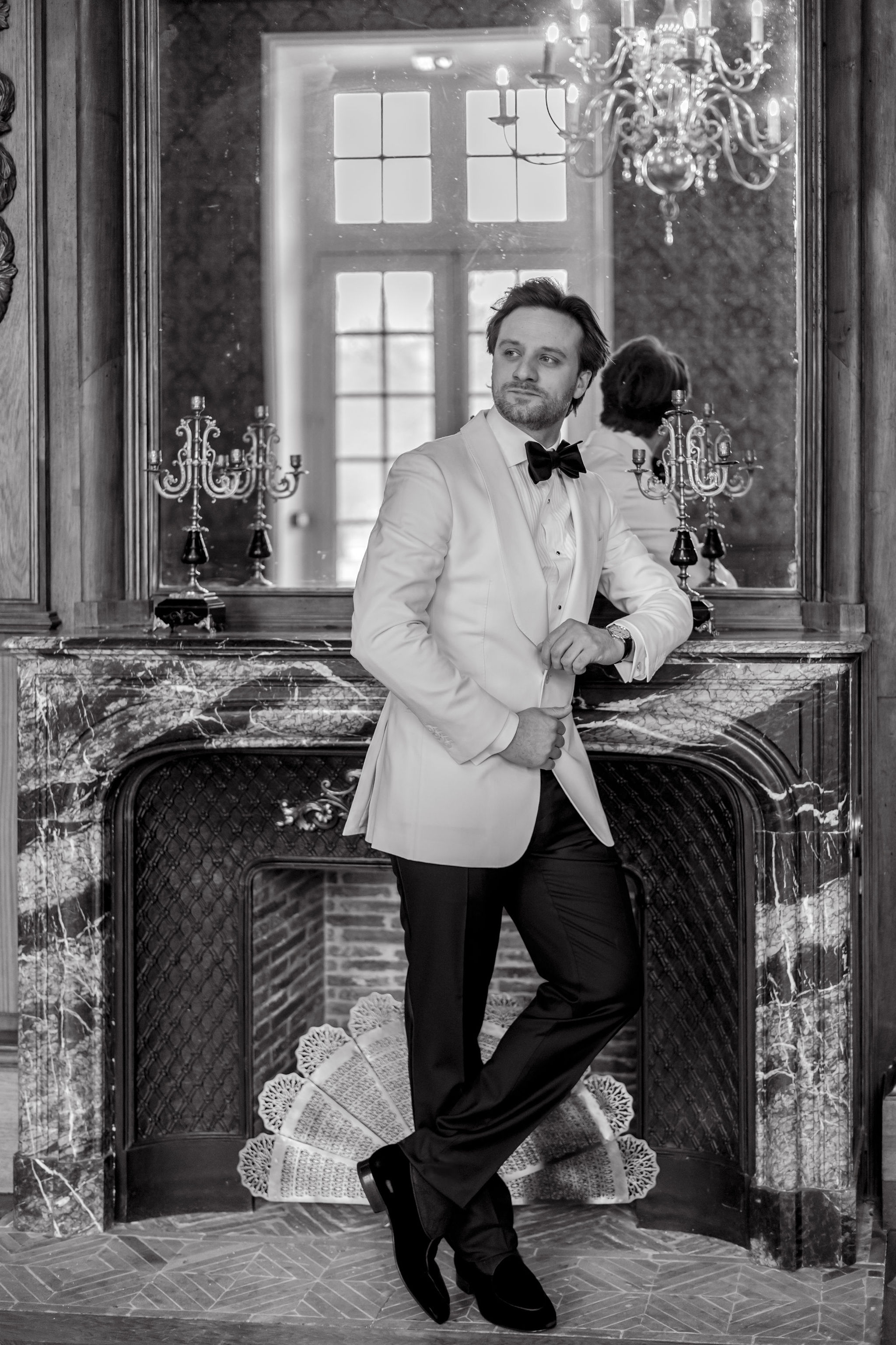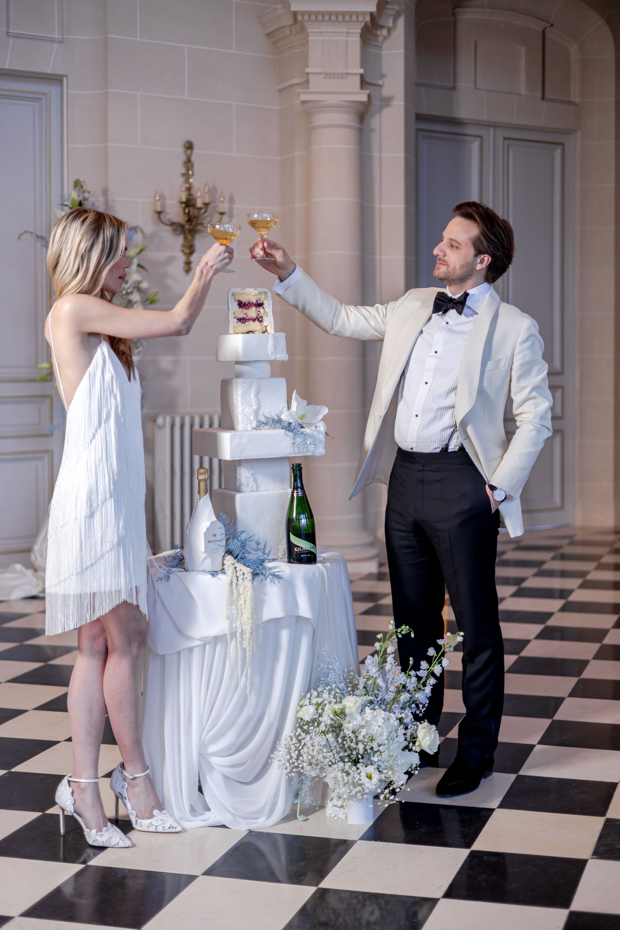 The groom, in Suitsupply, was styled with the same discipline. His look brought balance to the composition — polished, understated, and fully aligned with the mood rather than trying to dominate it. Shoes by Belle Belles and Jimmy Choo, along with jewelry from Sohelo Bijoux Mariage, completed the visual language with just enough light and refinement to sharpen the overall effect. Nothing was decorative for decoration’s sake. Every element worked to keep the focus where it belonged: on connection.