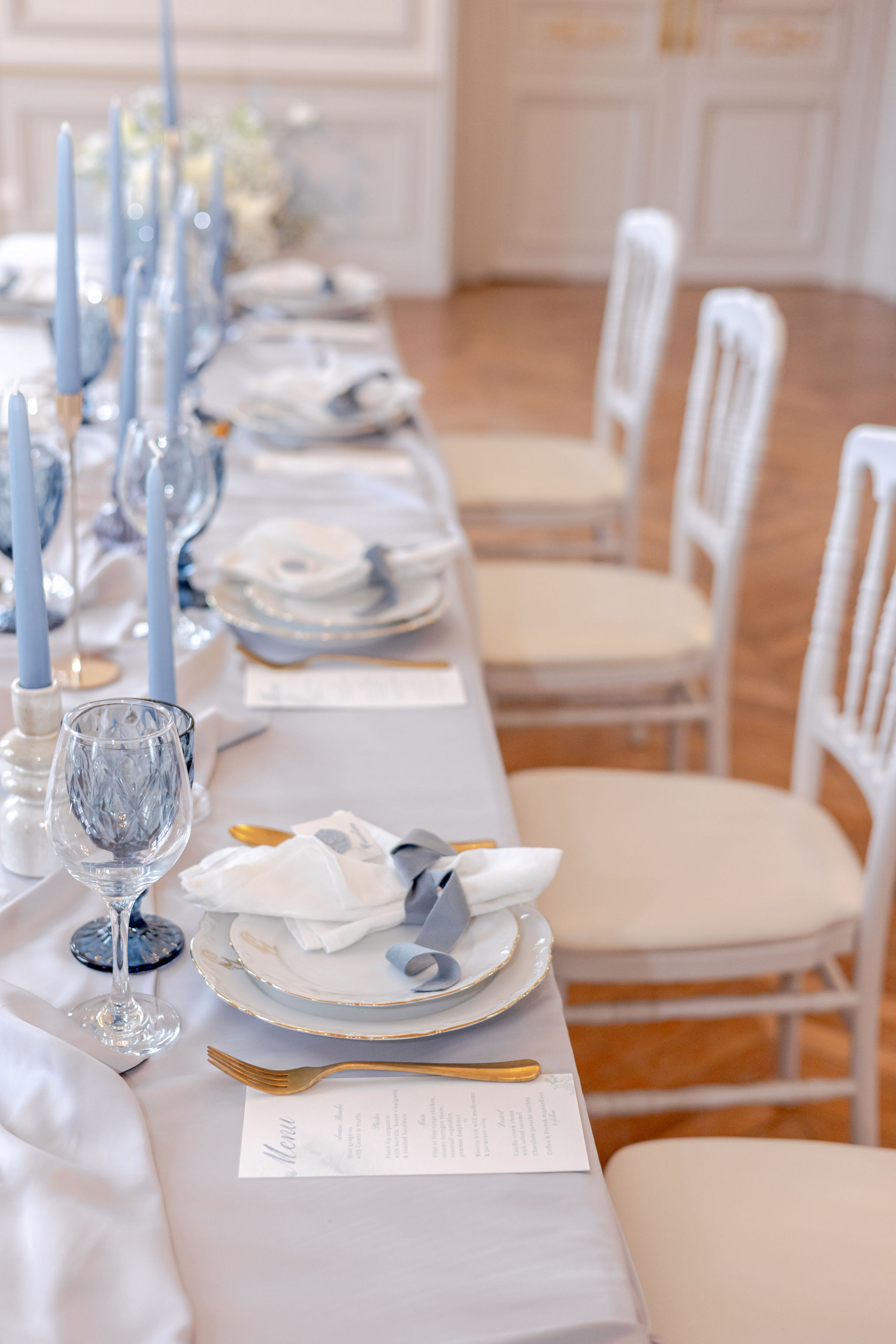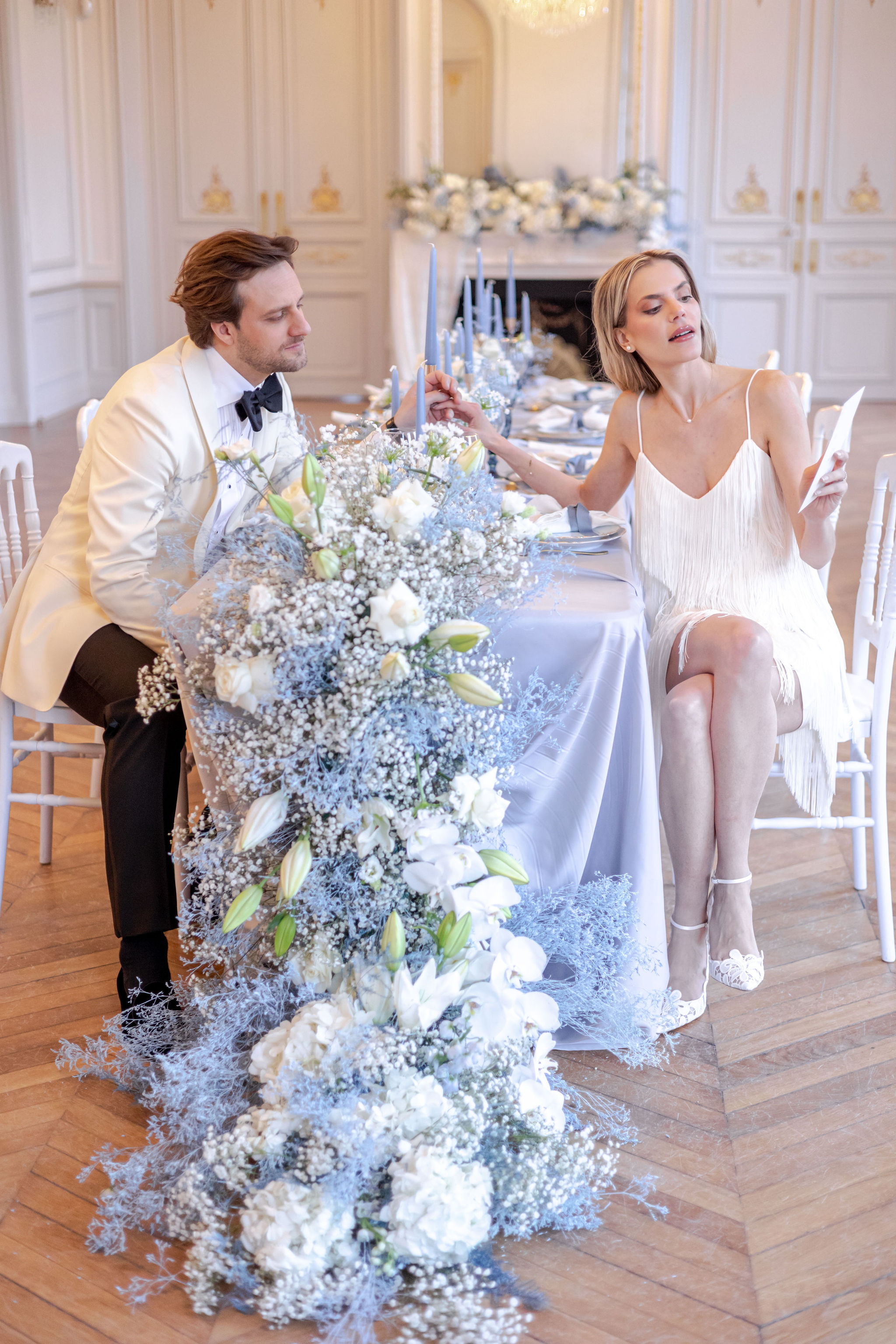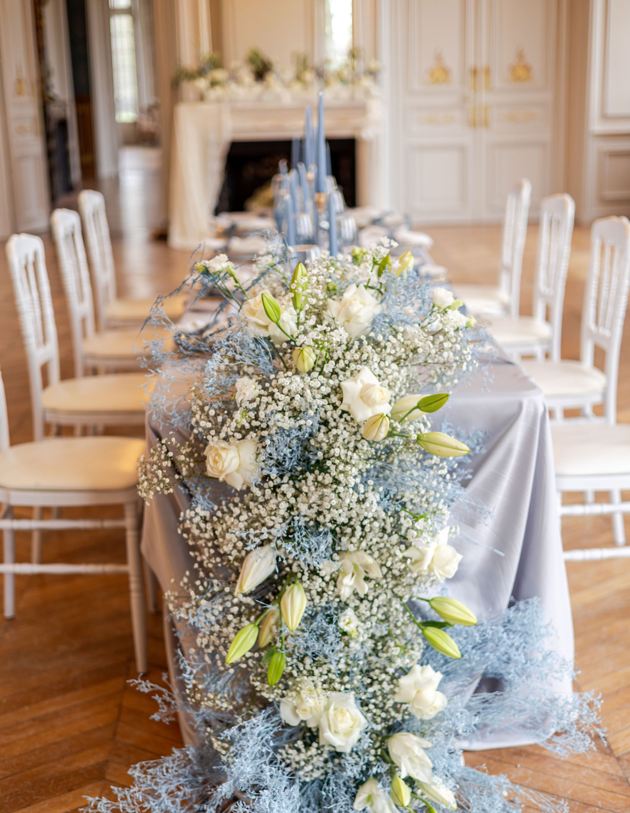 Ideoz Créations approached florals and wedding design with a clear understanding of that balance. The arrangements did not crowd the table or compete with the architecture. They opened the space instead, allowing the château’s quiet grandeur to remain visible while still bringing movement and tenderness into the frame. The effect was not sparse. It was measured.