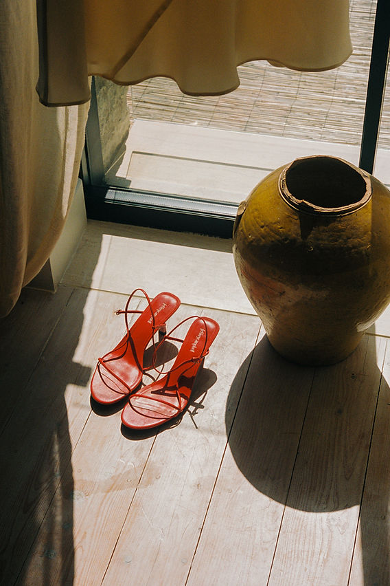 Rust-colored velvet heels feel luxurious and romantic. Tangerine satin pumps add a pop of pure joy. Peach-toned strappy sandals work perfectly for beach or garden weddings. And if you're feeling adventurous, sequined orange platforms or embellished orange mules create unforgettable detail shots.