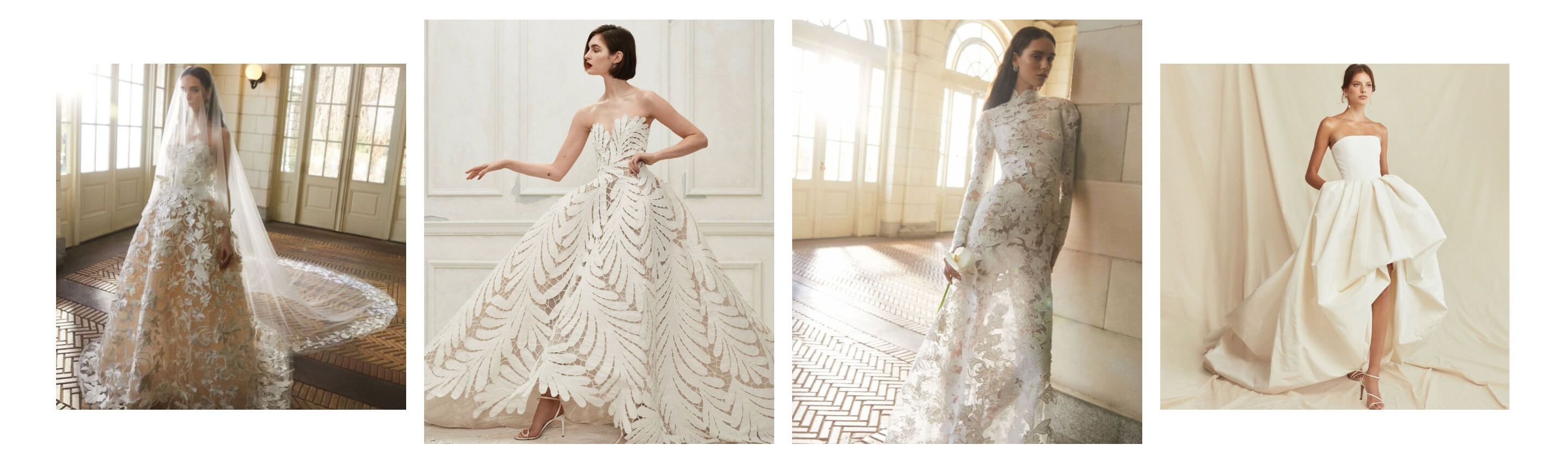 As we entered 2024, Oscar de la Renta’s bridal collection continued to embrace luxury and architectural precision. This collection focused on sharp, sculptural silhouettes that featured structured bodices and bold, asymmetrical designs. The dresses were artfully constructed, with a focus on clean lines and architectural shapes that celebrated the beauty of precise tailoring.The collection also included opulent fabrics such as satin duchess, silk faille, and brocade, which added a rich texture to the pieces. Statement-making trains and voluminous skirts remained a key feature, but they were now paired with modern, architectural elements that gave the gowns a fresh, edgy twist.For 2024, Oscar de la Renta’s bridal designs captured the essence of luxury, craftsmanship, and innovation, offering brides the chance to make a statement with their wedding gowns.