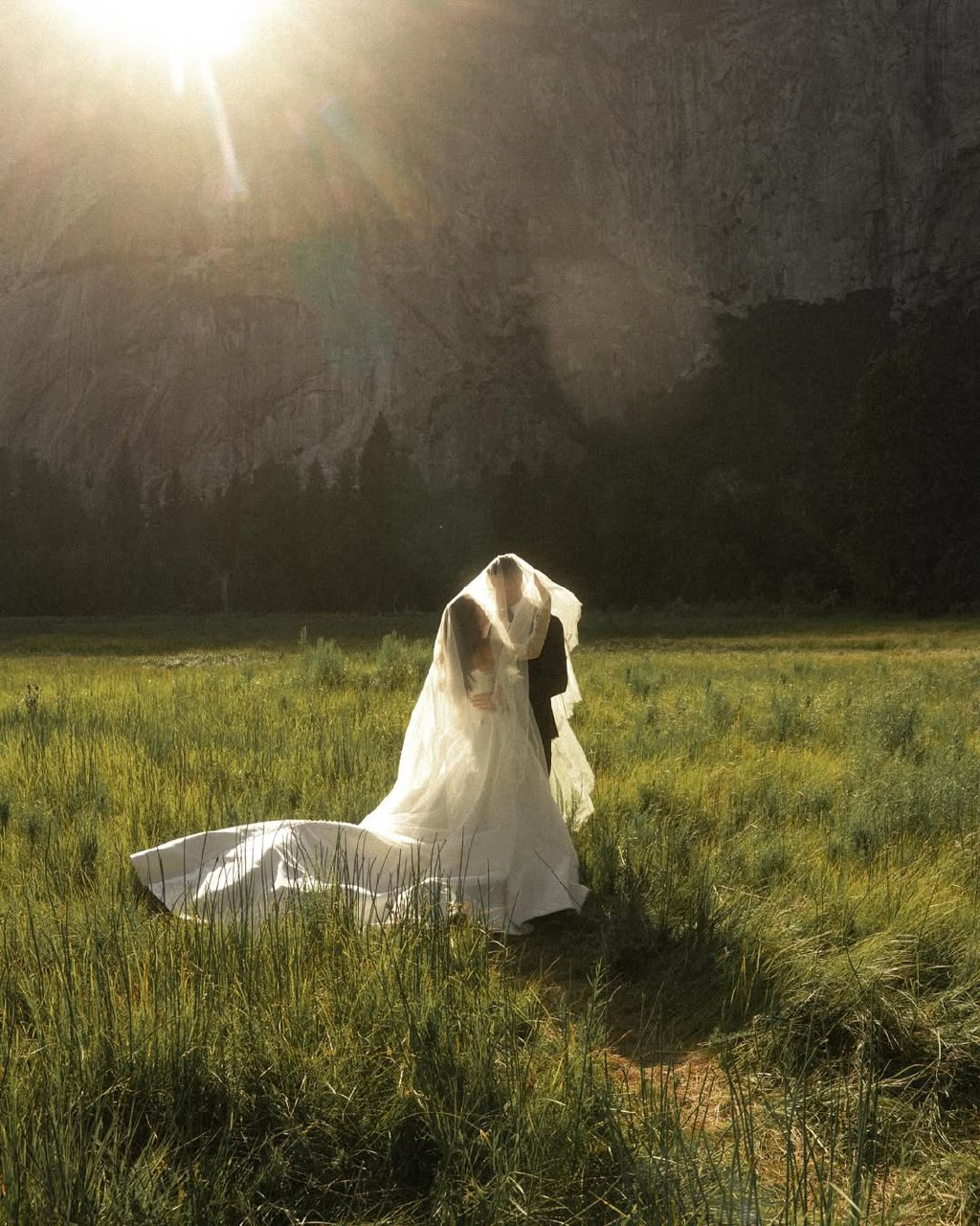 Golden hour fields provide the canvas for ethereal bridal portraits. Evening sunlight streams through tall grass and wildflowers under a limitless sky. Brides in flowing chiffon or tulle, gowns that billow in the breeze, are captured in images that seem almost surreal. The best poses are subtle: meandering through the meadow, relaxing in the grass, or standing as fabric ripples around them. This look is cinematic, achieved solely with natural light and a bride ready to roam the open landscape.