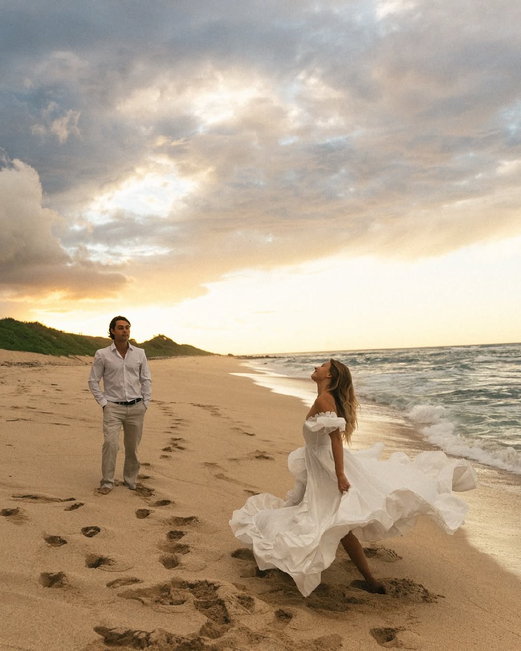 Sand beneath your feet, the roar of surf, a blazing sunset, and bare feet set the scene. Outdoor bridal portraits on the beach embody a spirit of relaxation, exuberance, and complete freedom. Flowing fabrics like silk and chiffon ride the breeze, responding to every step. Here, beauty lies in the natural and undone: a bride walking the waterline, her hem brushed by waves, hair tousled by wind. These moments shine especially at destination weddings, where the beach offers shifting light, vivid contrasts, and golden hour magic.