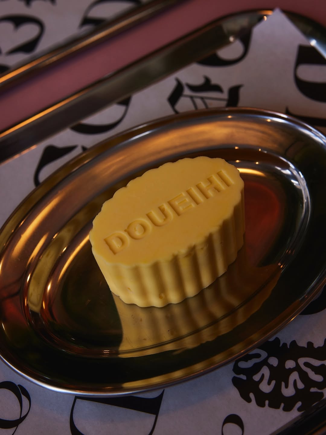 - Butter pieces with the couple's initials, served with warm fancy bread