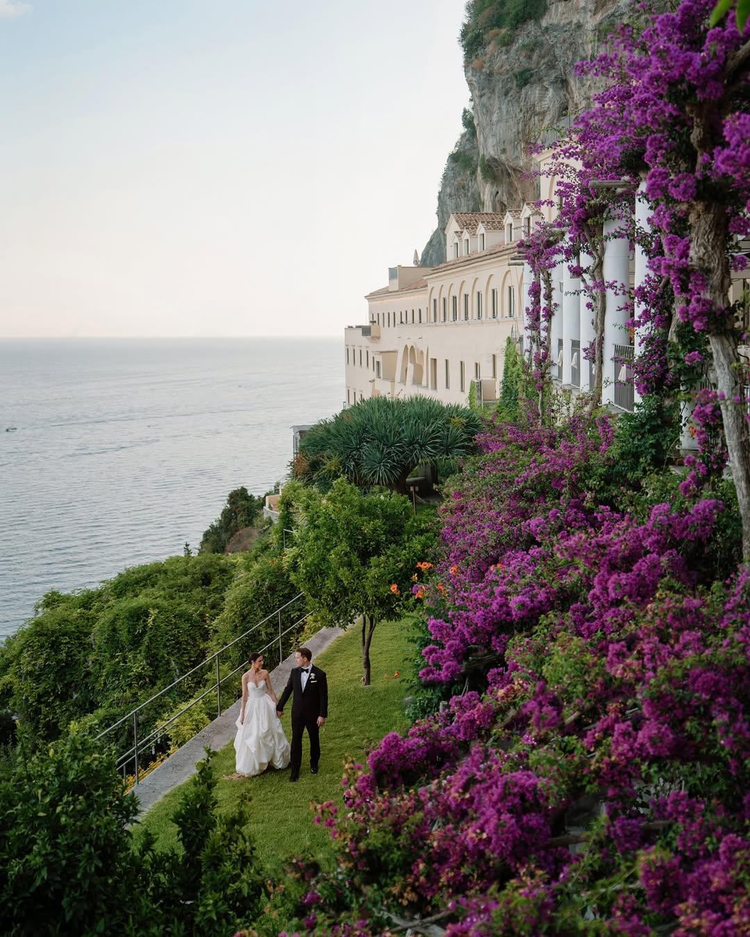 If Amalfi is timeless, Positano is pure theater. The pastel houses cascading down the cliffs, the rhythm of the sea below, and the scent of bougainvillea in the air — everything feels cinematic. For sweeping views, head to Via Cristoforo Colombo or Spiaggia Grande, where the vertical skyline meets turquoise water. Sunrise here glows in pinks and golds, while the evening light wraps the town in deep coral tones. No wonder every wedding photographer in Amalfi Coast dreams of capturing Positano’s silhouette — it’s a living composition of color, light, and joy.