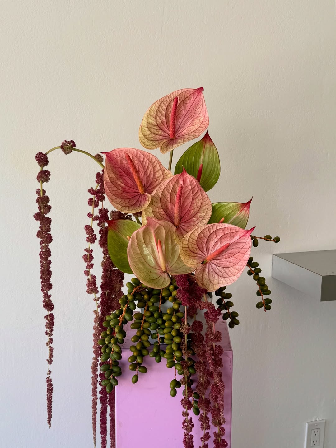 | Whimsical Textured | Trailing greenery, varied leaf shapes | Mix of pink tones and flower types | Loose, natural, movement-focused |
