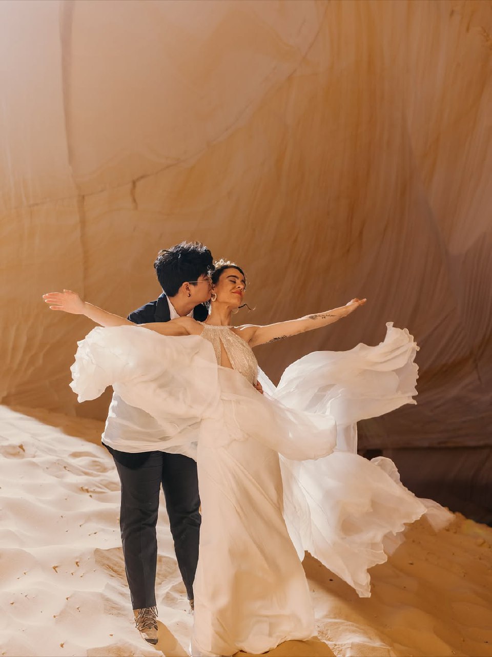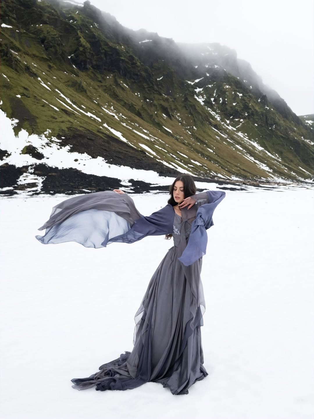 When it comes to styling for extreme environments, it's important to strike a balance between practicality and aesthetics. For example, wedding dresses worn in the mountains need to be practical for hiking to the location. Consider shorter lengths or be prepared to carry the dress and change on location. Footwear is also very important (hiking boots don't photograph well, and delicate heels won't work in nature). Layering allows you to adapt to temperature changes while adding visual variety. The aim is to look beautiful without looking ridiculous — a full ball gown on a glacier looks costume-like, whereas a flowing slip dress or well-tailored separates can look both elegant and appropriate.