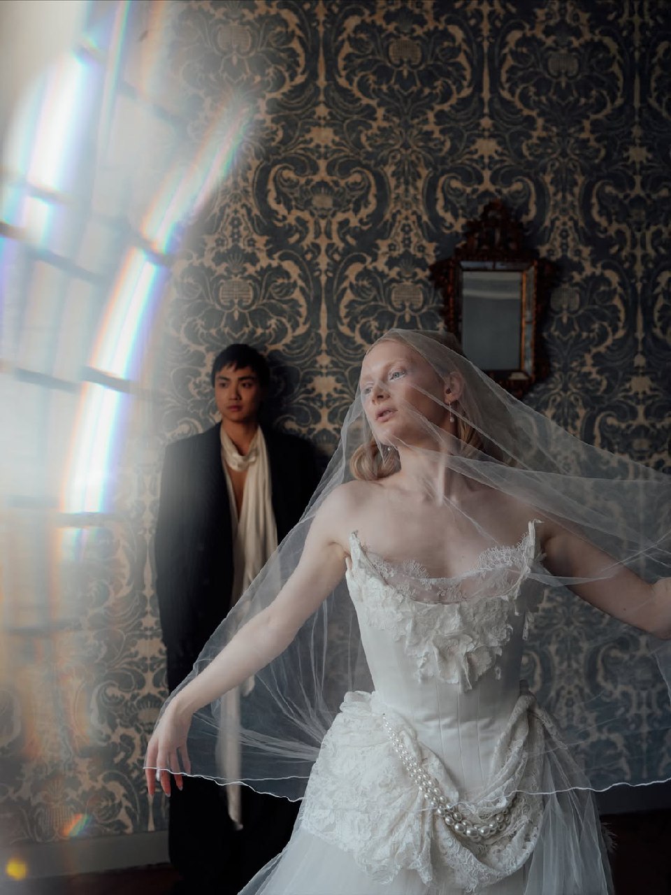 Styling in such locations should support the space rather than compete with it. Clean silhouettes, classic tailoring, and restrained hair and makeup allow architectural details to remain dominant. European interiors — Parisian apartments, Italian palazzos, Viennese ballrooms — already carry visual authority, so the strongest post-wedding poses stay minimal, letting the setting deliver the drama while the couple brings intimacy and presence.